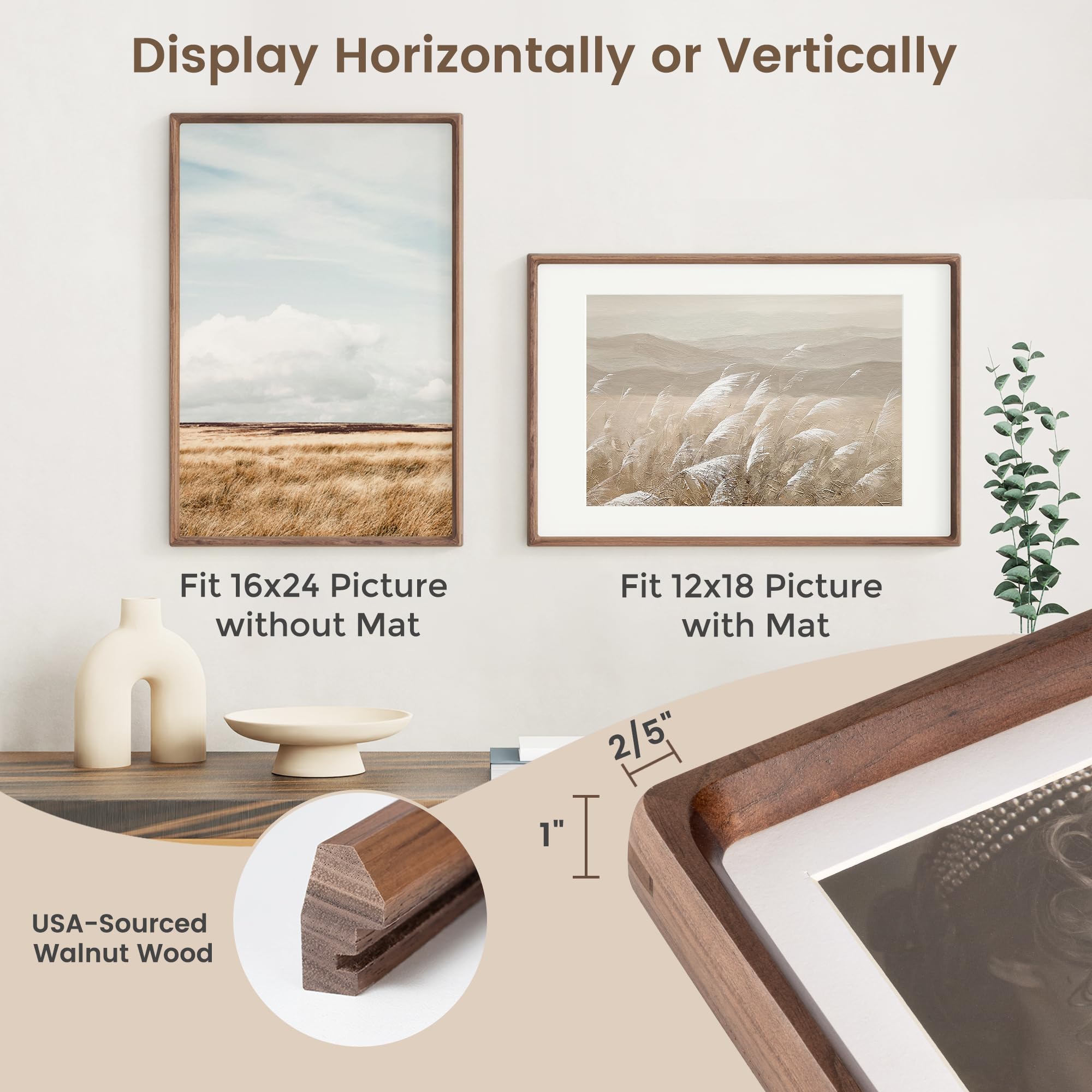 Fun Memories 壁用 11x14インチ オークフォトフレーム 11x14インチ マット仕上げ 8x10インチ 無垢材ポスターフレーム ウォールアート写真やプリント用 (ウォールナット、1パック)