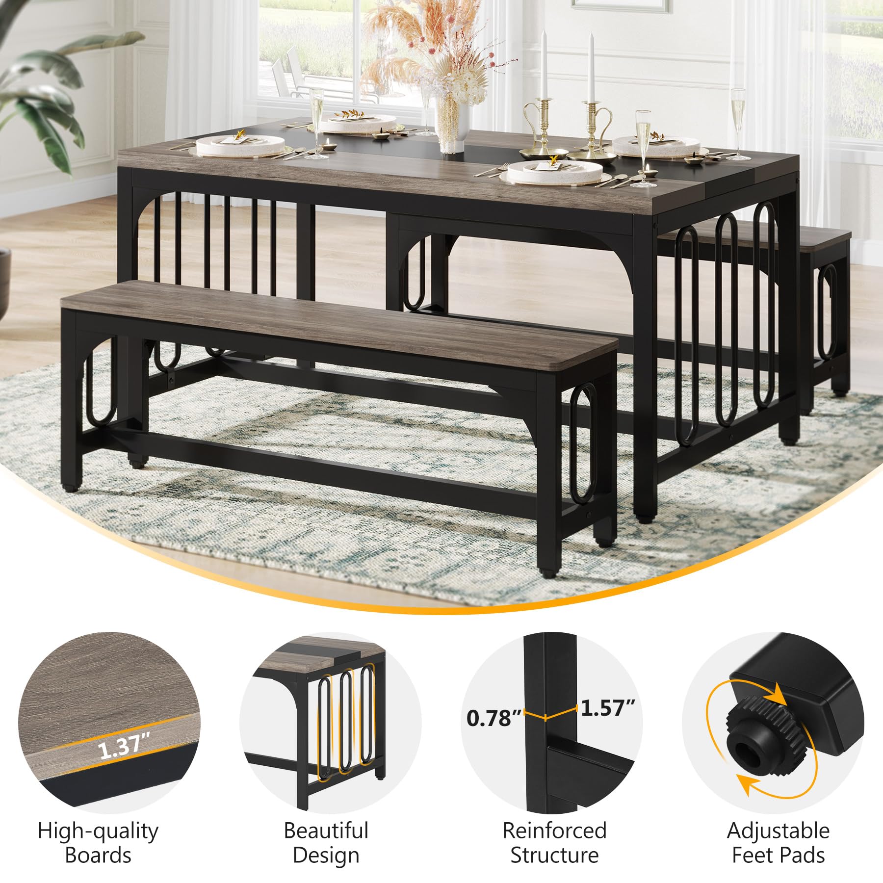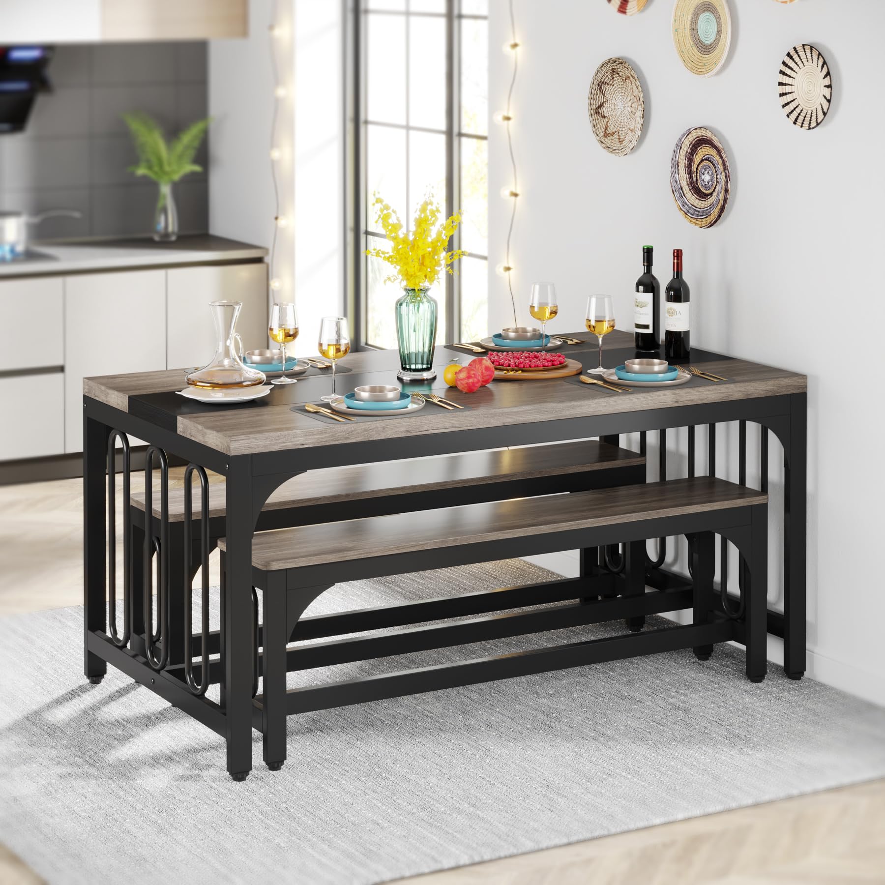 Tribesigns ダイニングテーブルセット 4人用 3点セット 食卓 テーブル 四人用 ベンチ付き おしゃれ 幅140 北欧 リビングテーブル セット