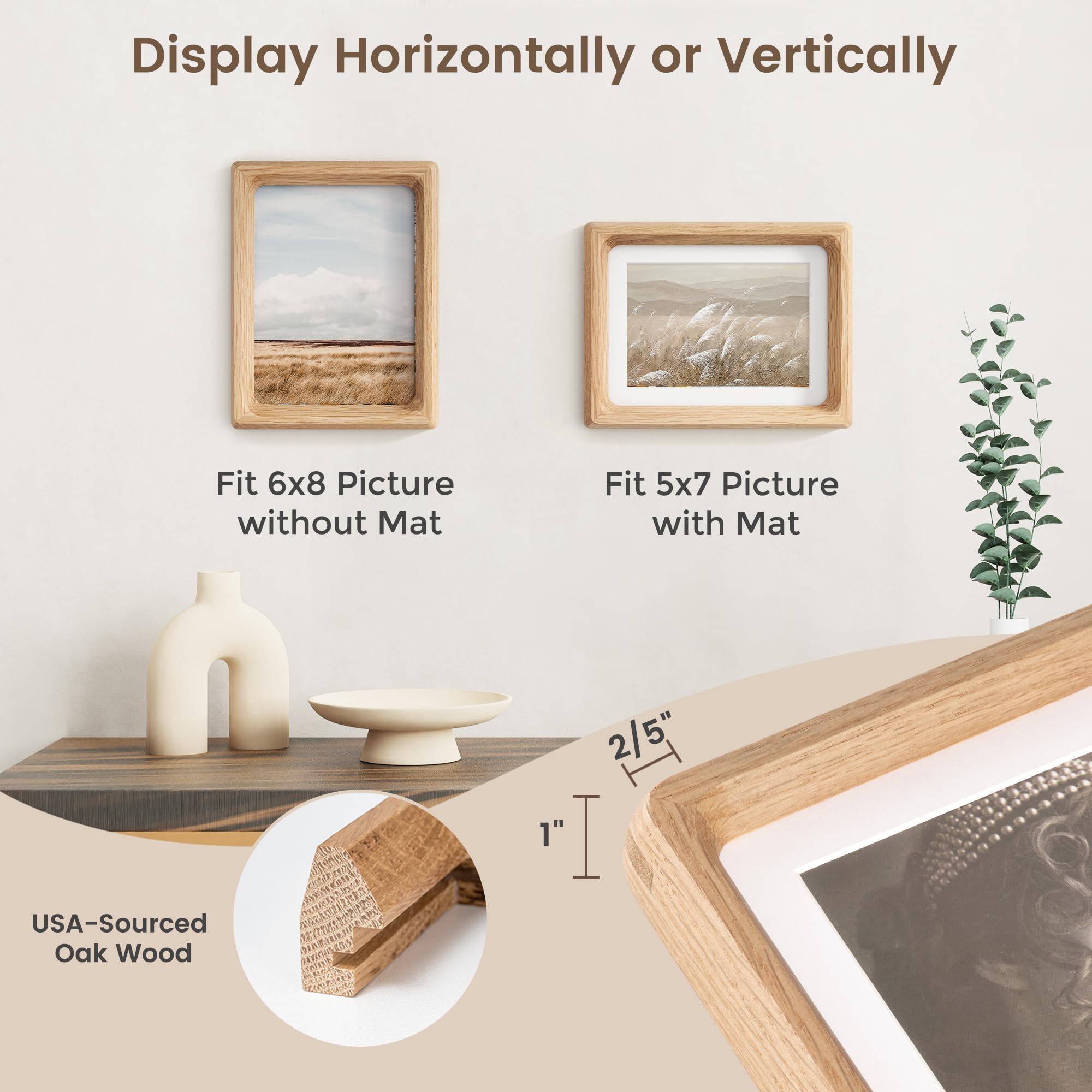 Fun Memories 6x8 木製フォトフレーム 5x7マット付き 卓上/壁掛け 手作り丸角