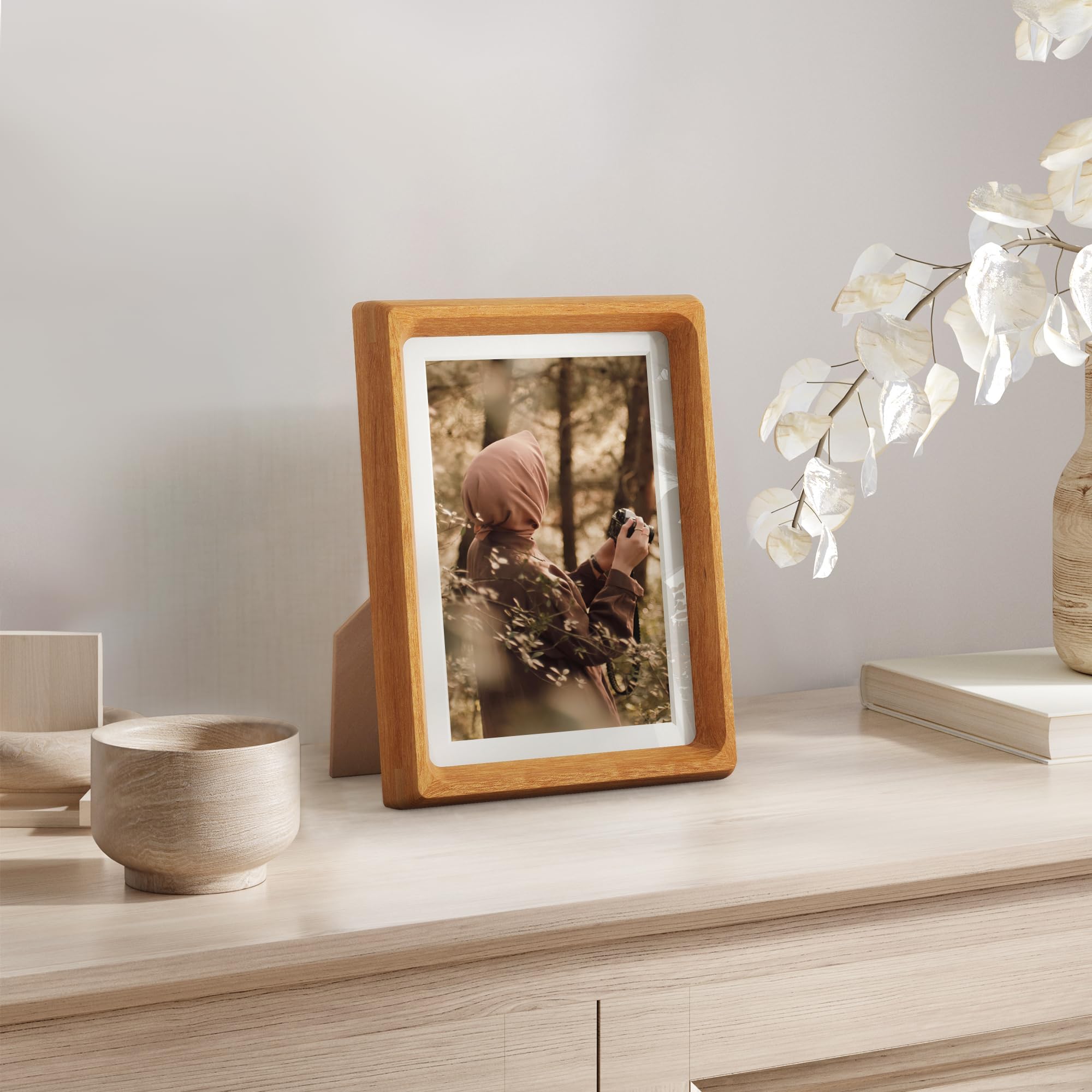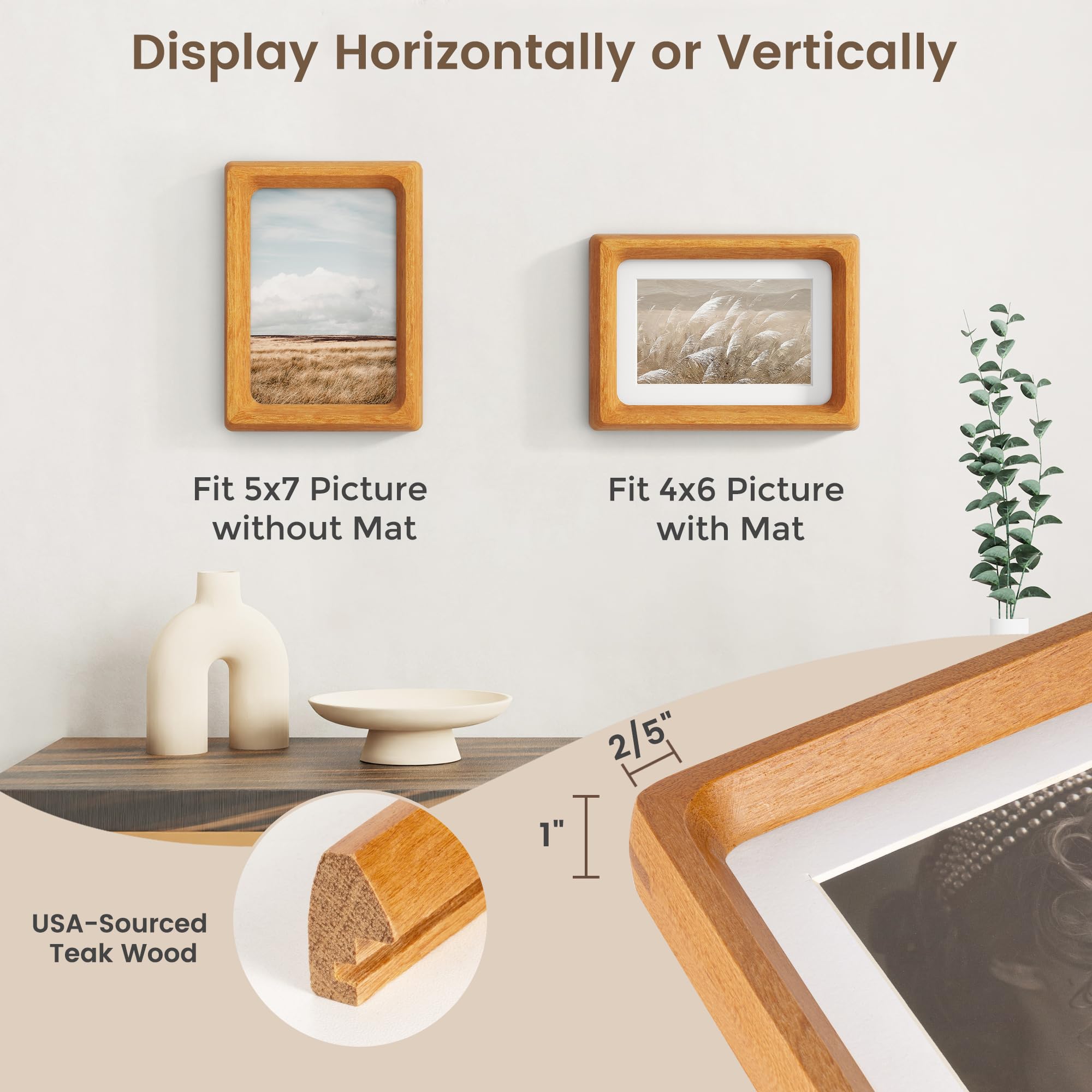 Fun Memories 5x7インチ 写真フレーム 米国調達チーク材フォトフレーム HD強化ガラス付き