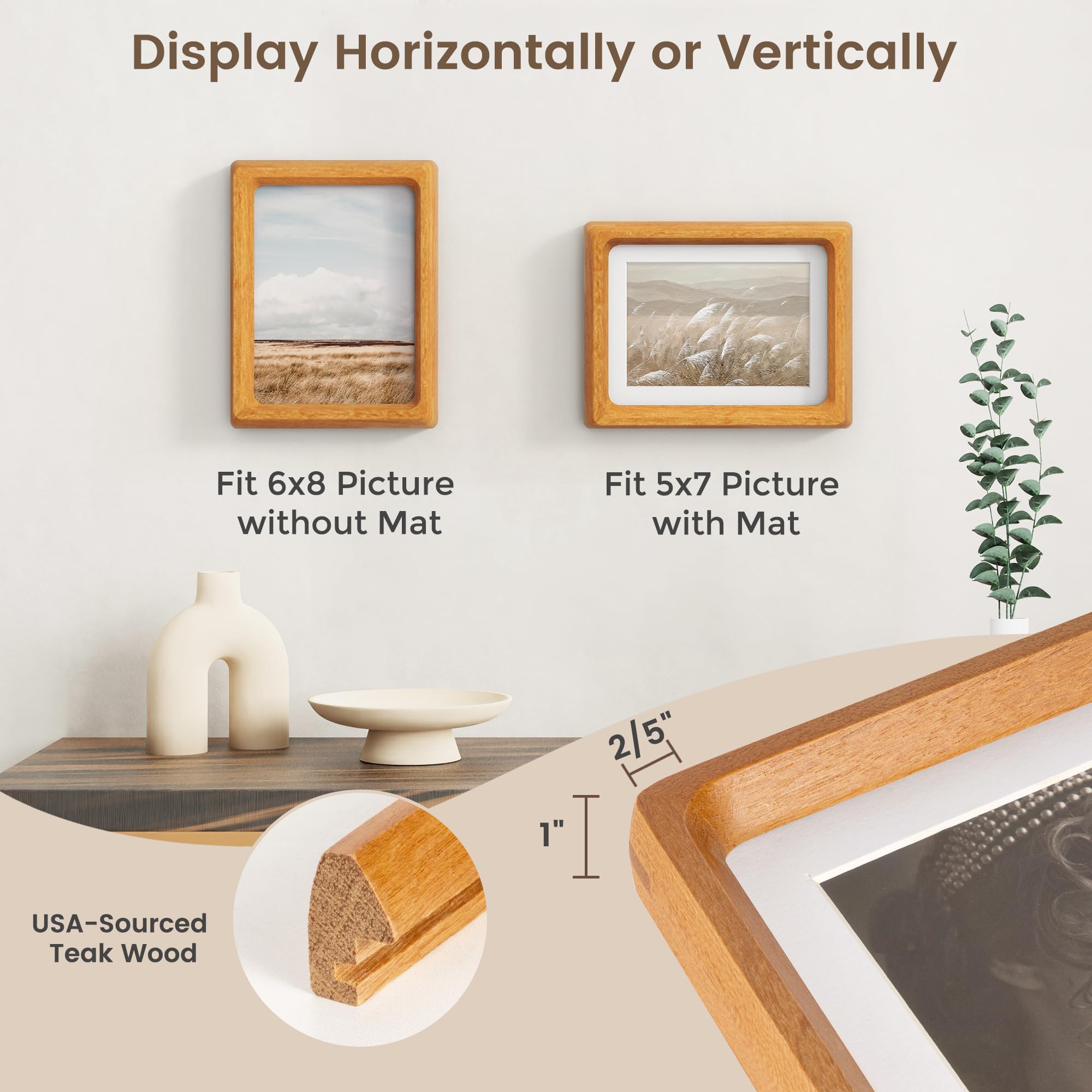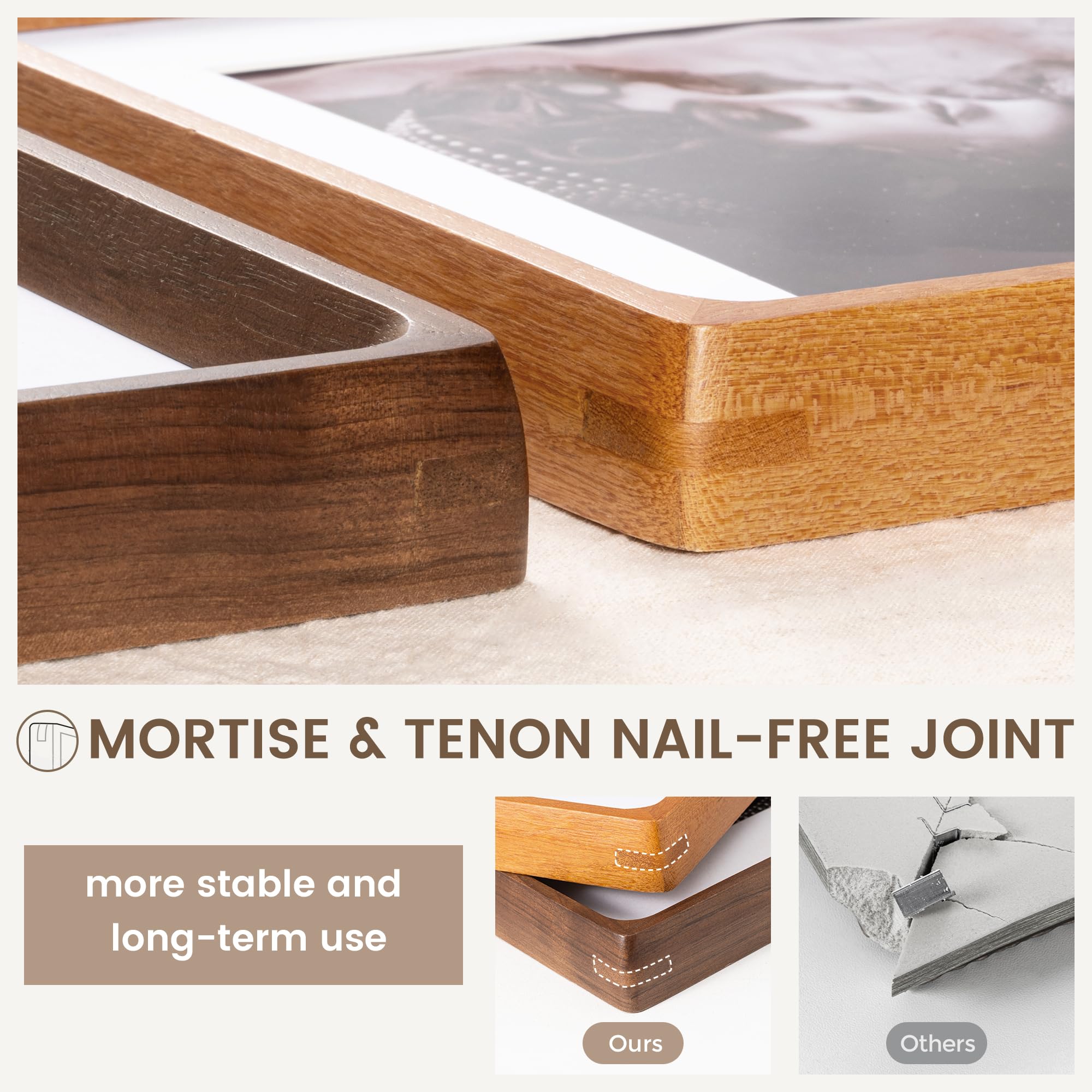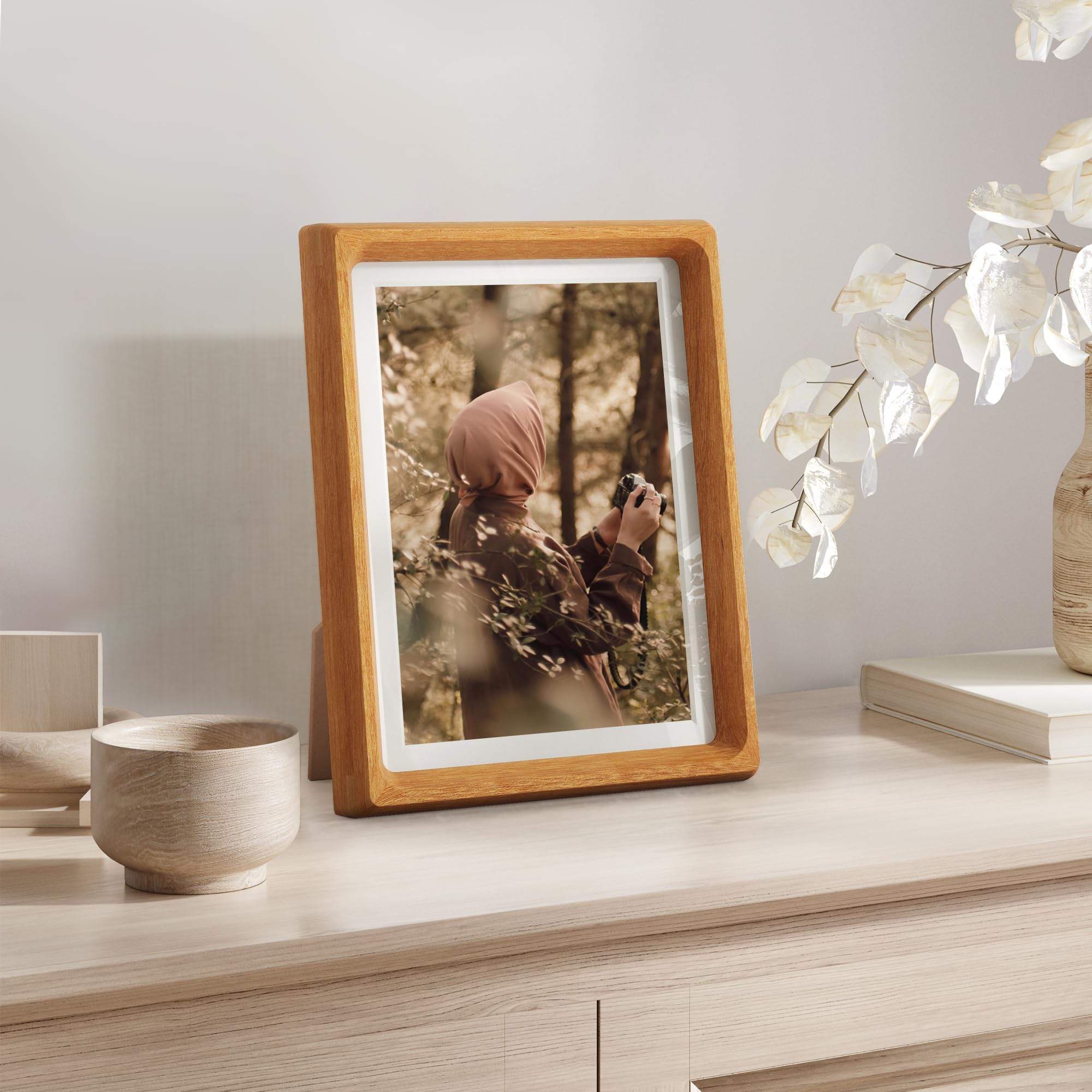 8.5x11インチ 木製フォトフレーム 6x8マット付き 卓上/壁掛け 手作り丸角