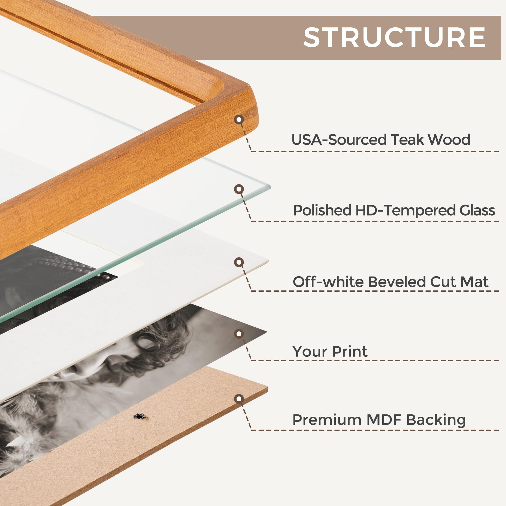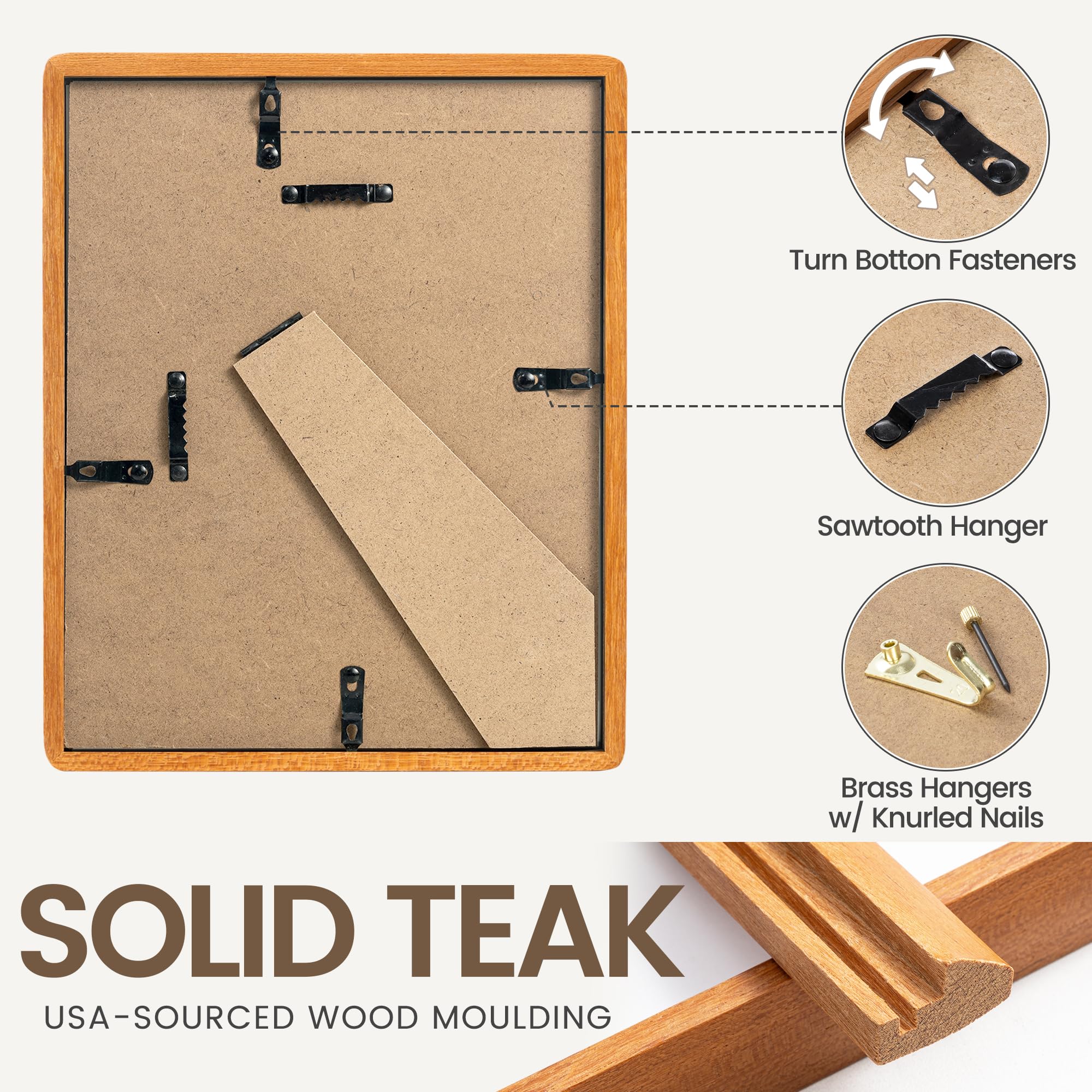 12x16インチの写真フレーム、HD強化ガラスを使用した米国産チーク材フォトフレーム