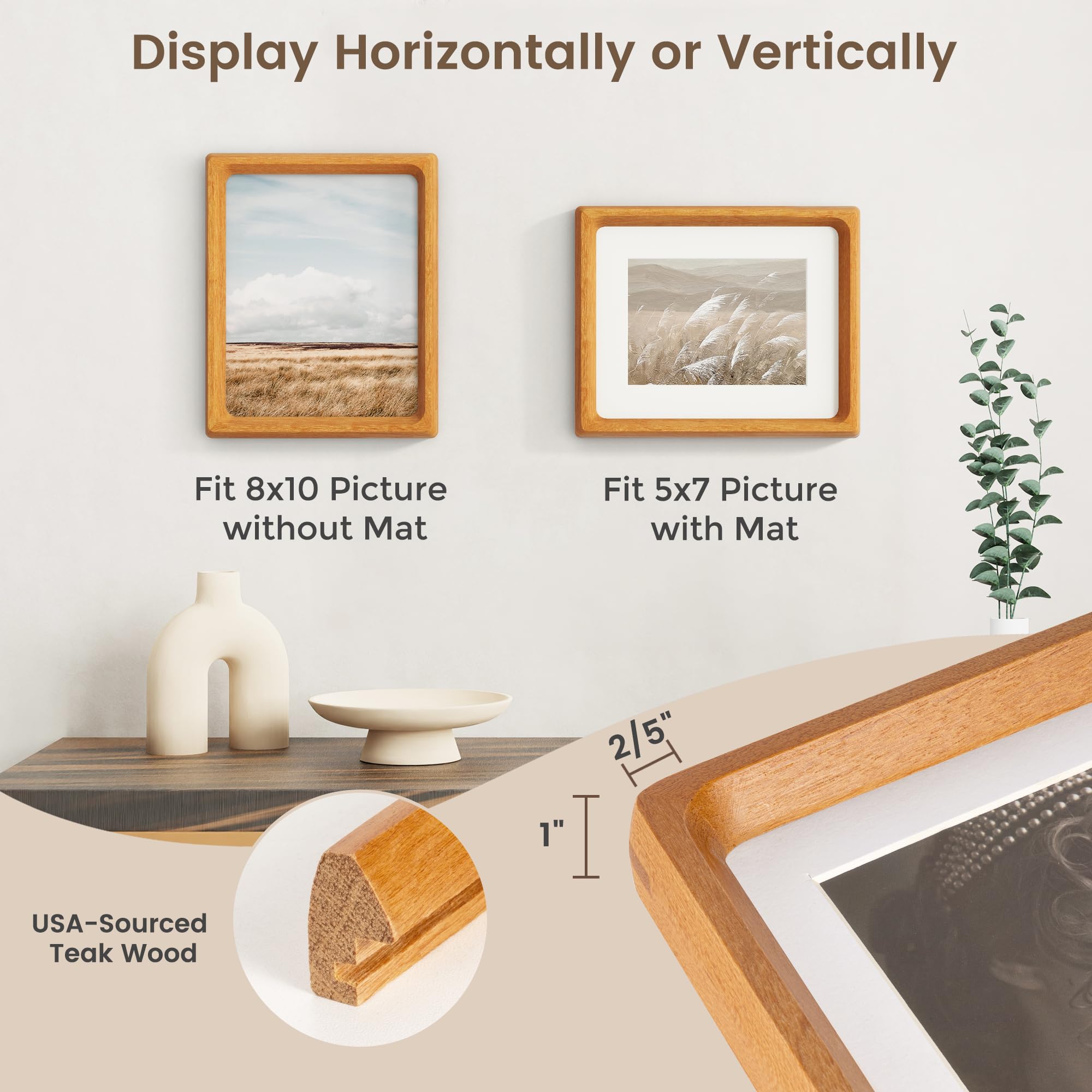 Fun Memories 8x10インチ オークフォトフレーム 壁用 8x10インチ マット仕上げ5x7インチ 無垢材フォトフレーム ウォールアート写真やプリント用 (ウォールナット、1パック)