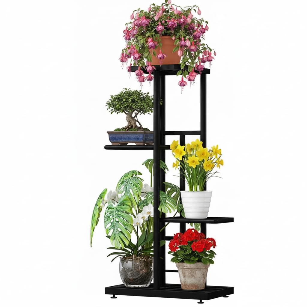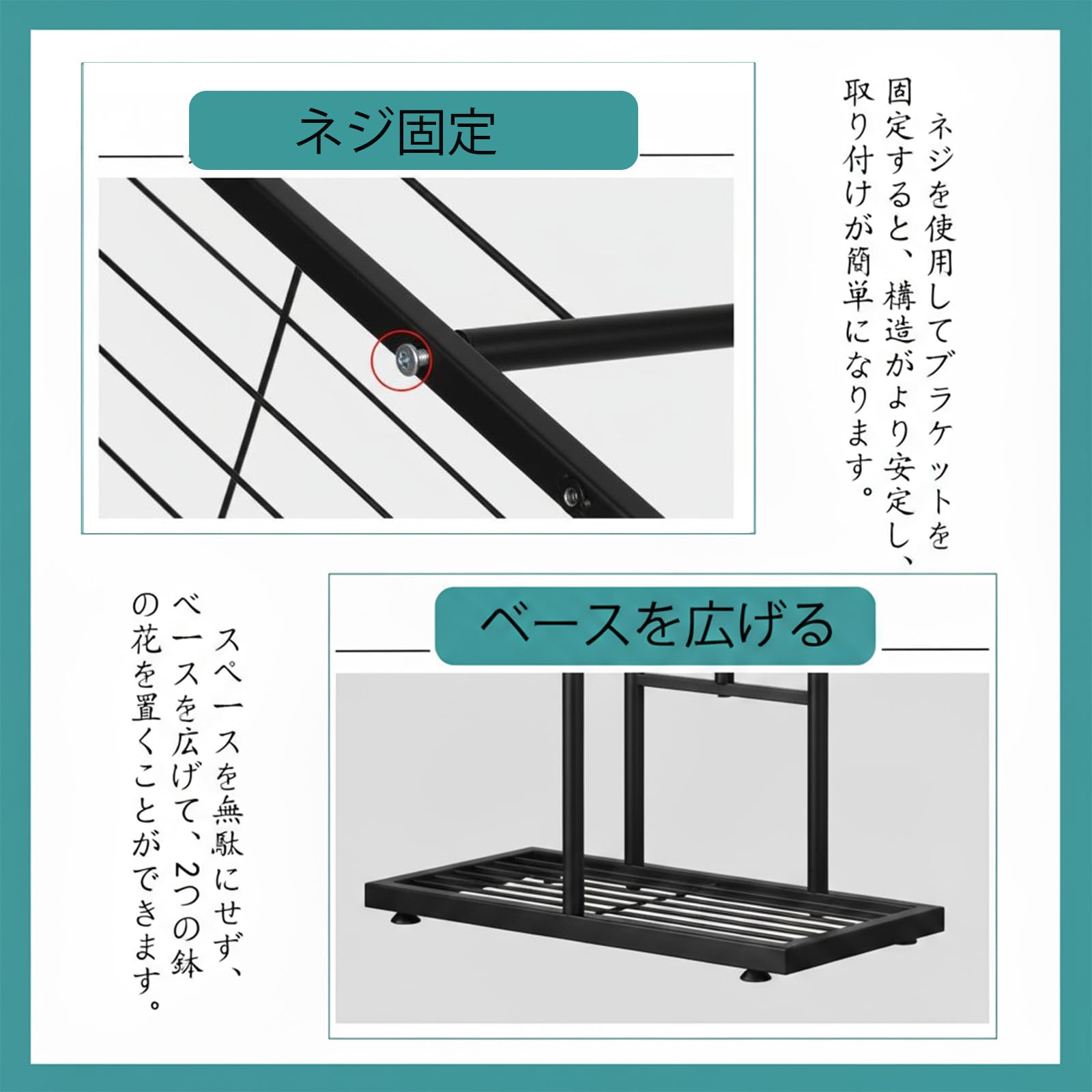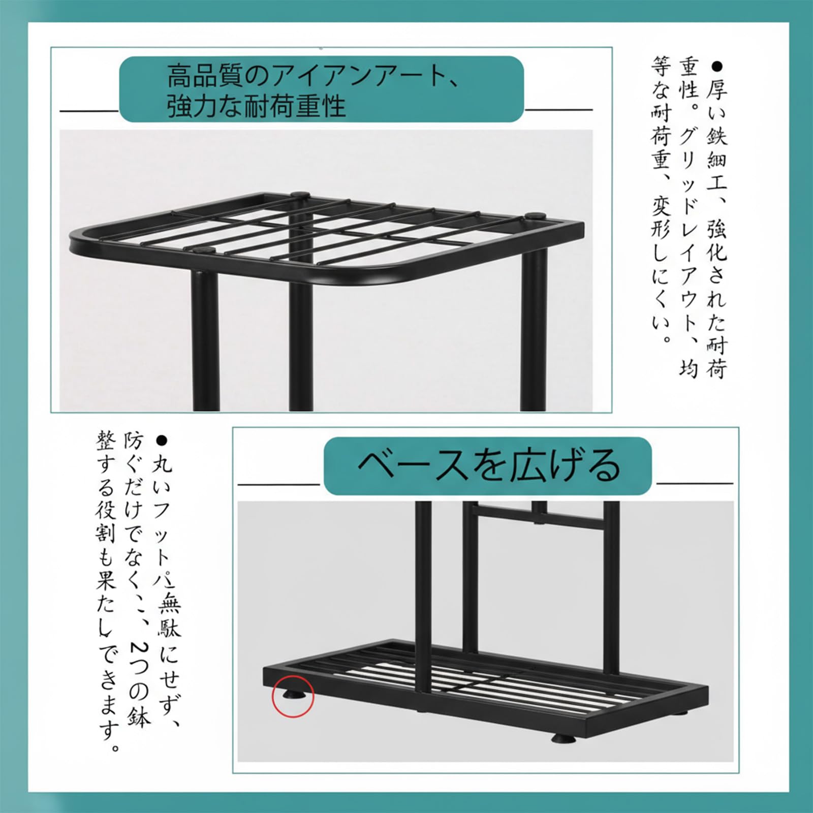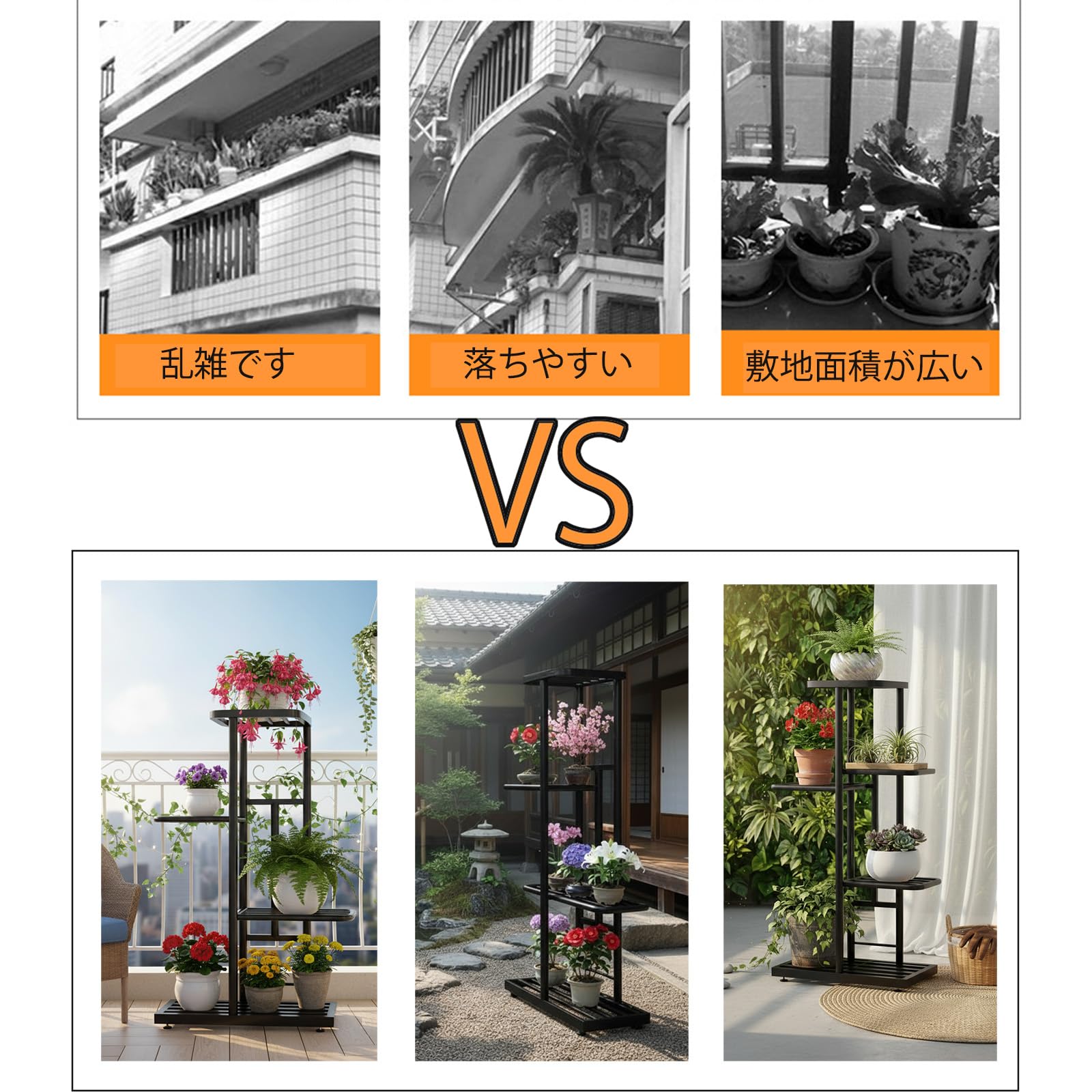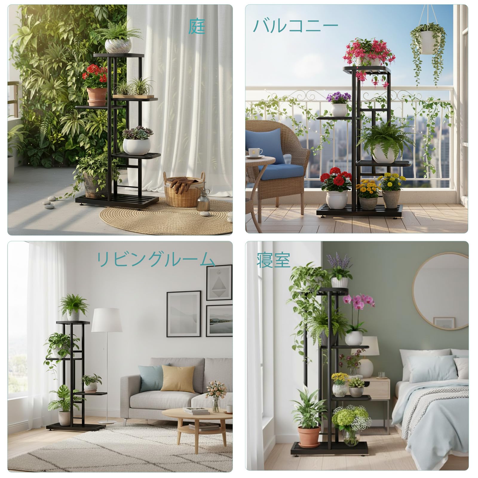 フラワースタンド 花台 植木鉢スタンド 室内外兼用の4段フラワースタンド プランタースタンド 園芸ラック ガーデンラック 観葉 植物 花棚 花架 花置き台 鉢植え置き台 リビングルーム バルコニー 多肉棚 植木 棚 組み立てが簡単 おしゃれ 飾り 収納 黒い