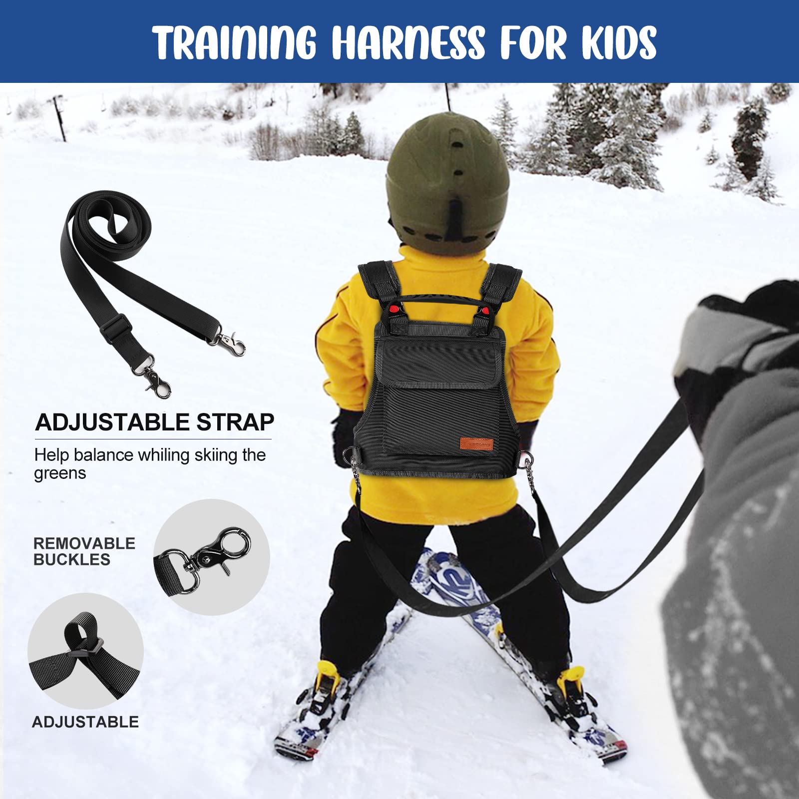 Odoland 子供用スキー トレーニングハーネス キッズ スノーボード スキーサポート ビンディング リーシュ付き スピードコントロール 初心者向け サイズ調整できる