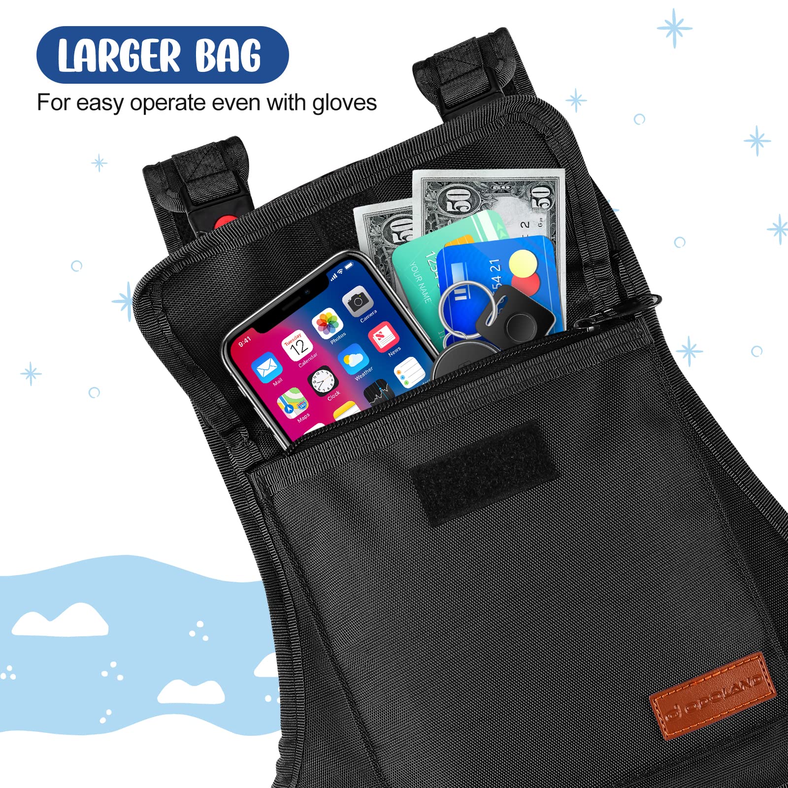 Odoland 子供用スキービンディング+バッグ ハーネス スノーボード スキーサポート 袋付き 子供スキートレーニング サイズ調整できる