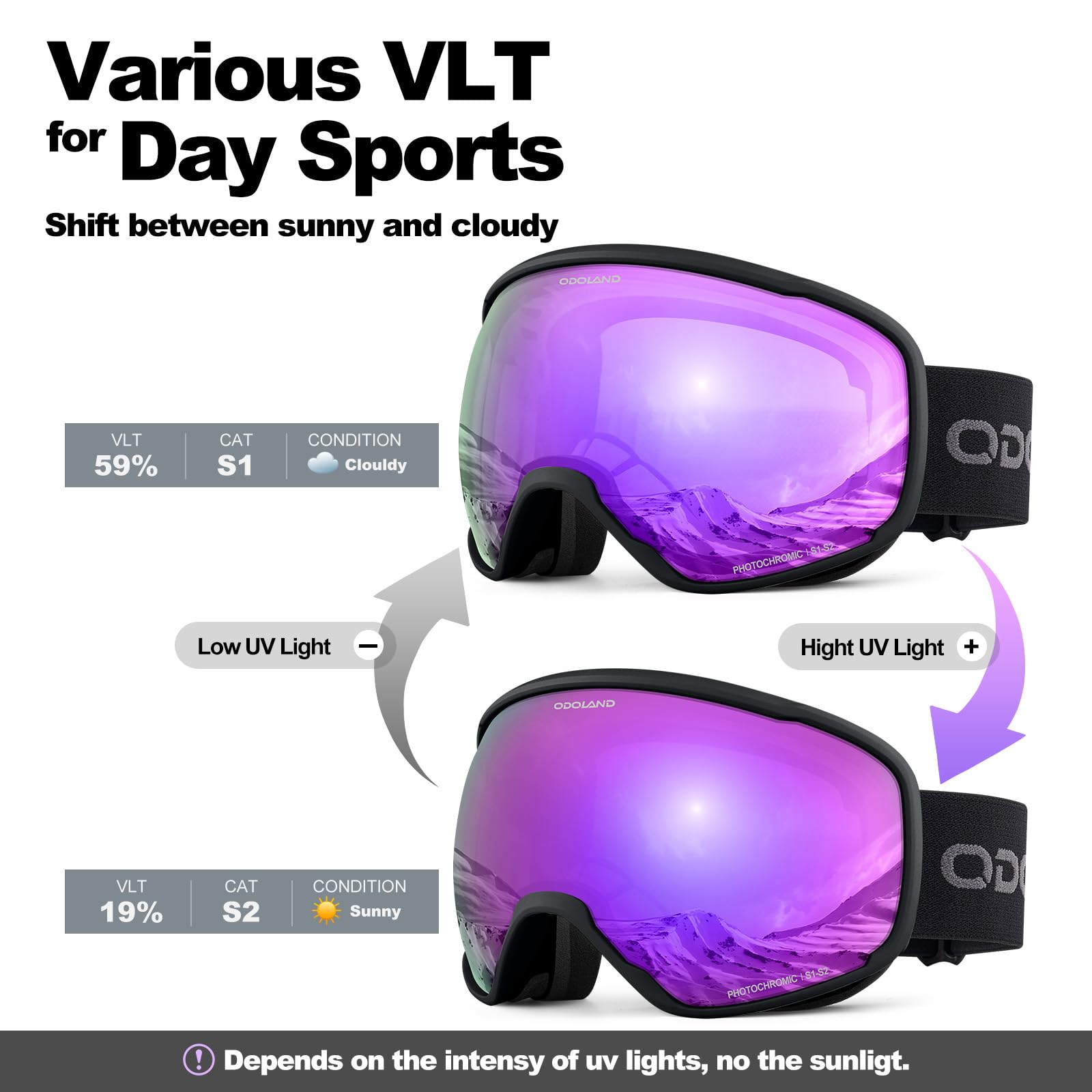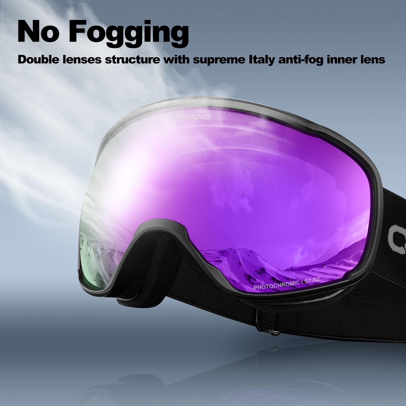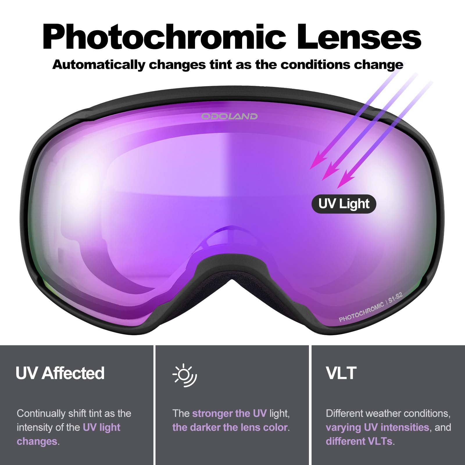 [Odoland] 調光スノーゴーグル 変色ミラーレンズ 曇り止め OTGメガネ対応 UV400 自動調光 昼夜兼用 フォトクロミック スノーボードゴーグル 通気 防風 防塵 防雪 軽量 耐衝撃 男女兼用 大人用