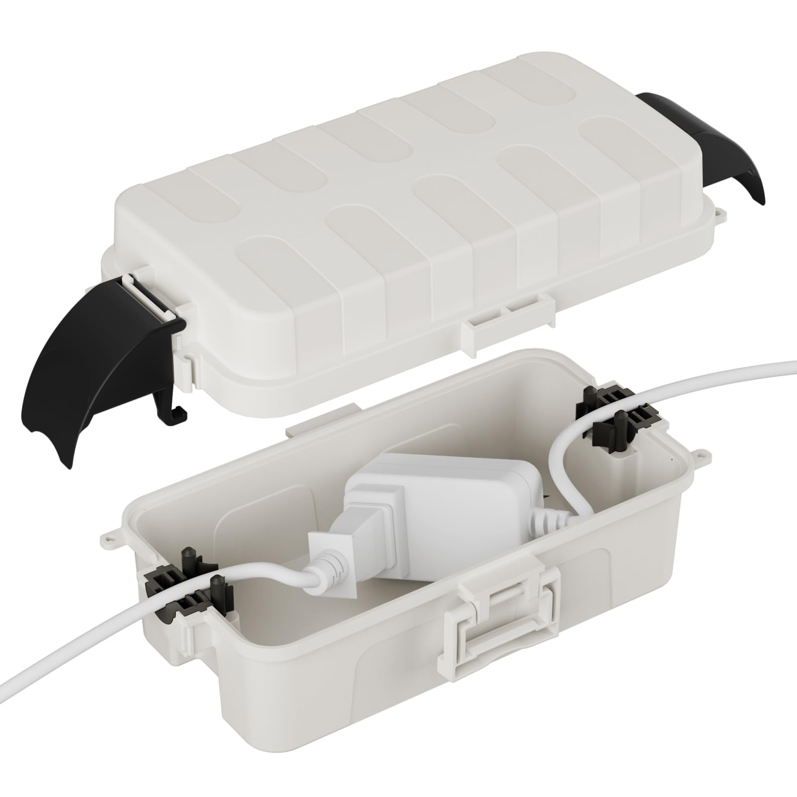 Flemoon吊り下げ可能なコンセント保護ボックス 屋外防水延長コード電源ボックス 耐候防雨用 ライトストリング保護用 ブラック
