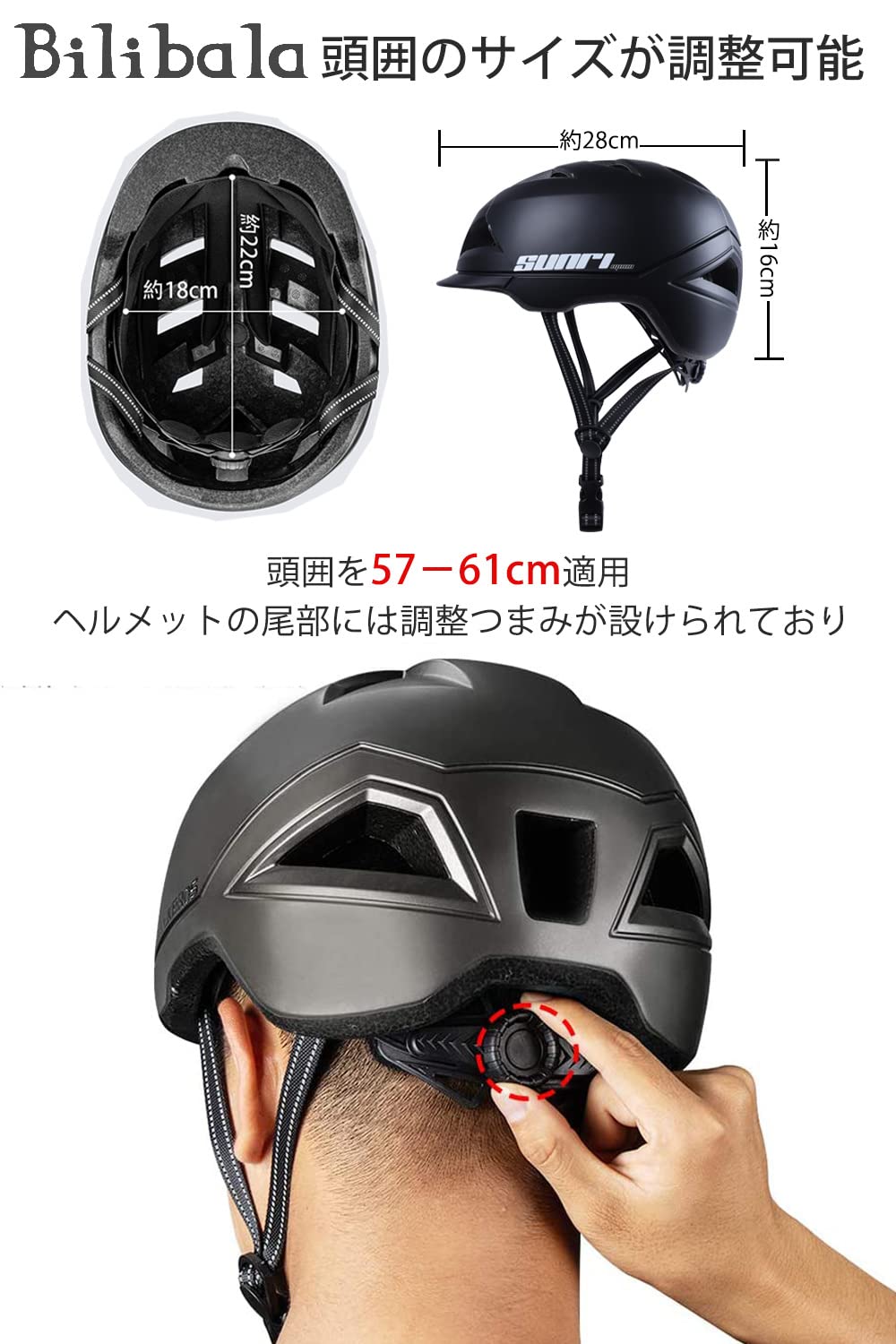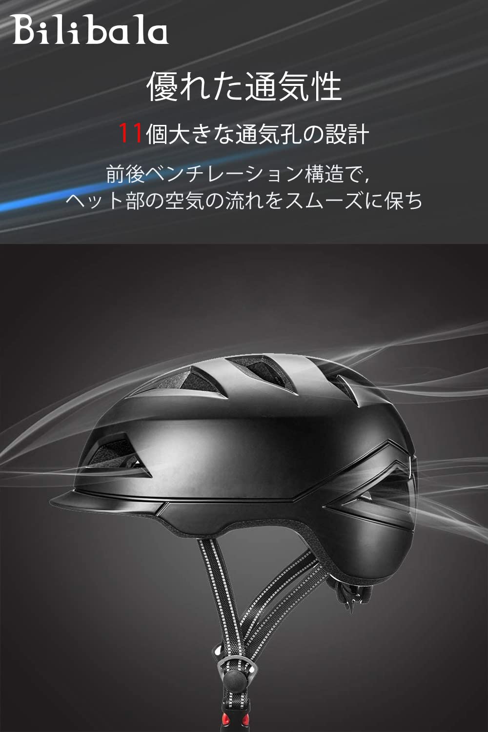 Bilibala 自転車 ヘルメット 大人用 中~高校生向け 街乗り 通勤 通学 ヘルメット 超軽量 高剛性 流線型 通気 CPSC/CE認定済み 自転車ヘルメット 男女兼用 カジュアル ヘルメット サイズ調整可能 頭囲57~61CM M/L ブラック