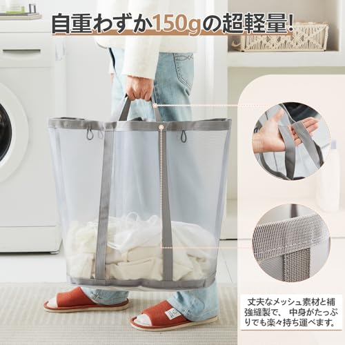 TECHMILLY ランドリーバスケット 折りたたみ 洗濯カゴ 大容量 71L メッシュ 省スペース 取っ手付き ランドリーバッグ 収納 洗濯物 袋 かご 持ち運び可能 軽量 旅行 ゴミ箱 (ホワイト、1PCS)