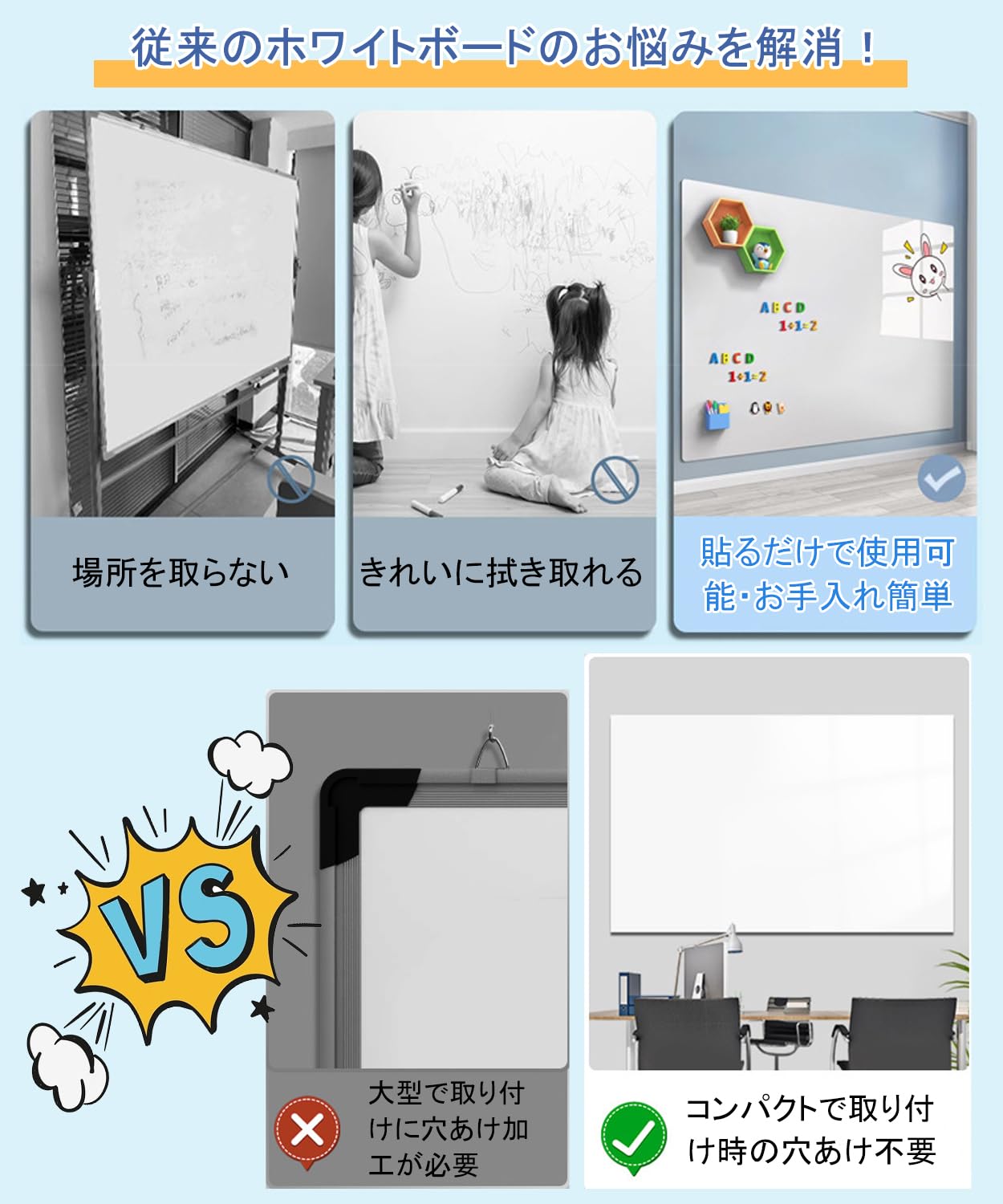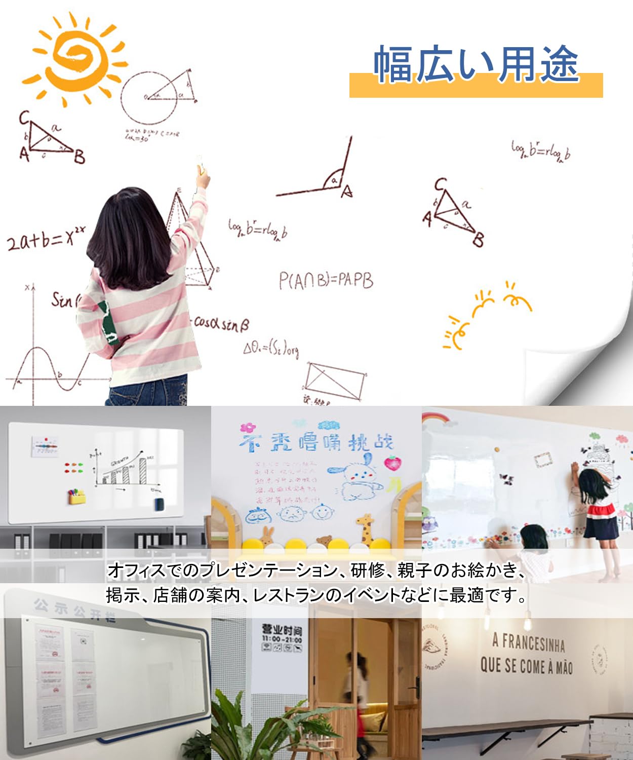 Happyee ホワイトボート シート ホワイトボード ホワイトシート 粘着式 マグネット対応 壁に貼り付け はがせる 自由に裁断 予定表 こども落書き 掲示板 メモー用に対応