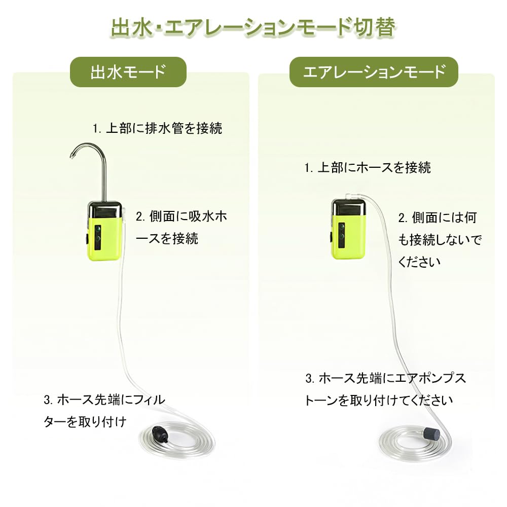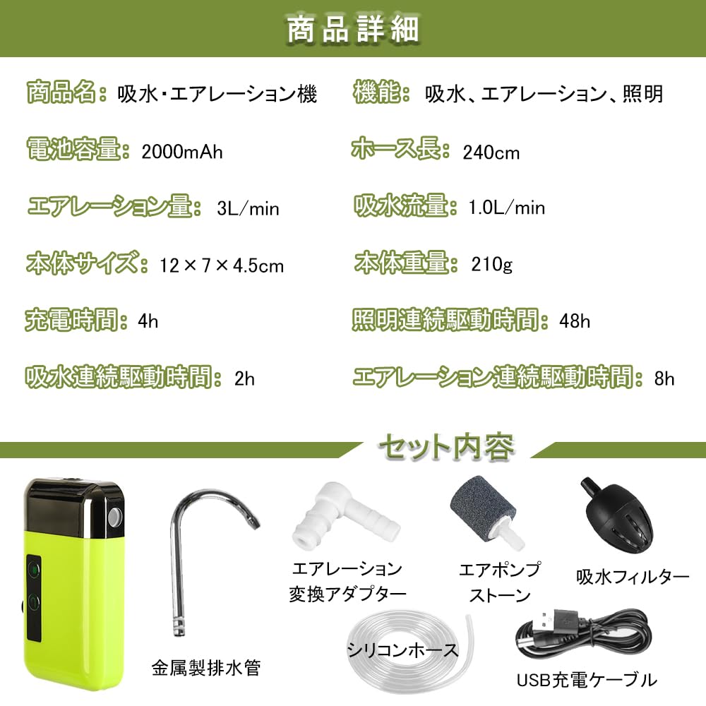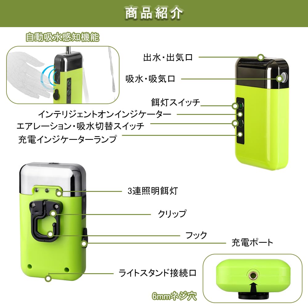 BTtime アウトドアポンプ USB 充電式 ウォーターポンプ 給水ポンプ エアーポンプ 簡易式水栓 センサー感知スイッチ付き LEDライト付き 小型 一体化 電動式 釣り/水槽/活かし輸送/屋外/非常用