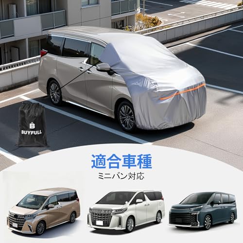 ハーフカバー 一体式 半分自動車カバー 210Dオックスフォード 裏起毛タイプ フロントガラス・ボンネット保護 防水 防雪 防塵 UVカット 日焼け防止 反射ストリップ付き ミニバン アルファード セレナ デリカ D:5用 四季対応 収納袋付き