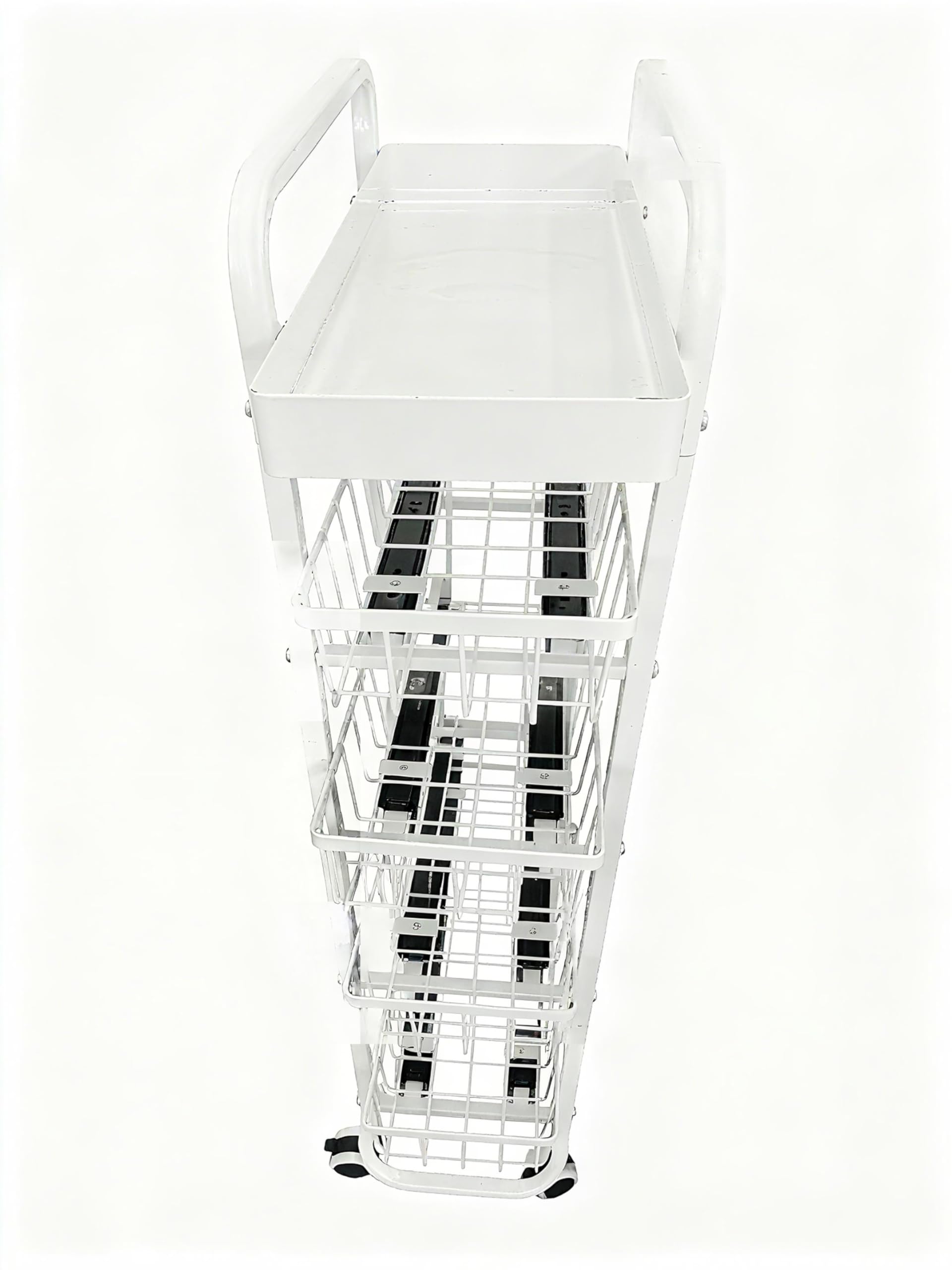 SPACEKEEPER キッチンワゴン 隙間収納 スリム [スライド式] 22cm 収納カップ 仕切板付き 多機能 小物 食品 調味料 キャスター付き 組立簡単 浴室 台所 冷蔵庫横 4段 ホワイト