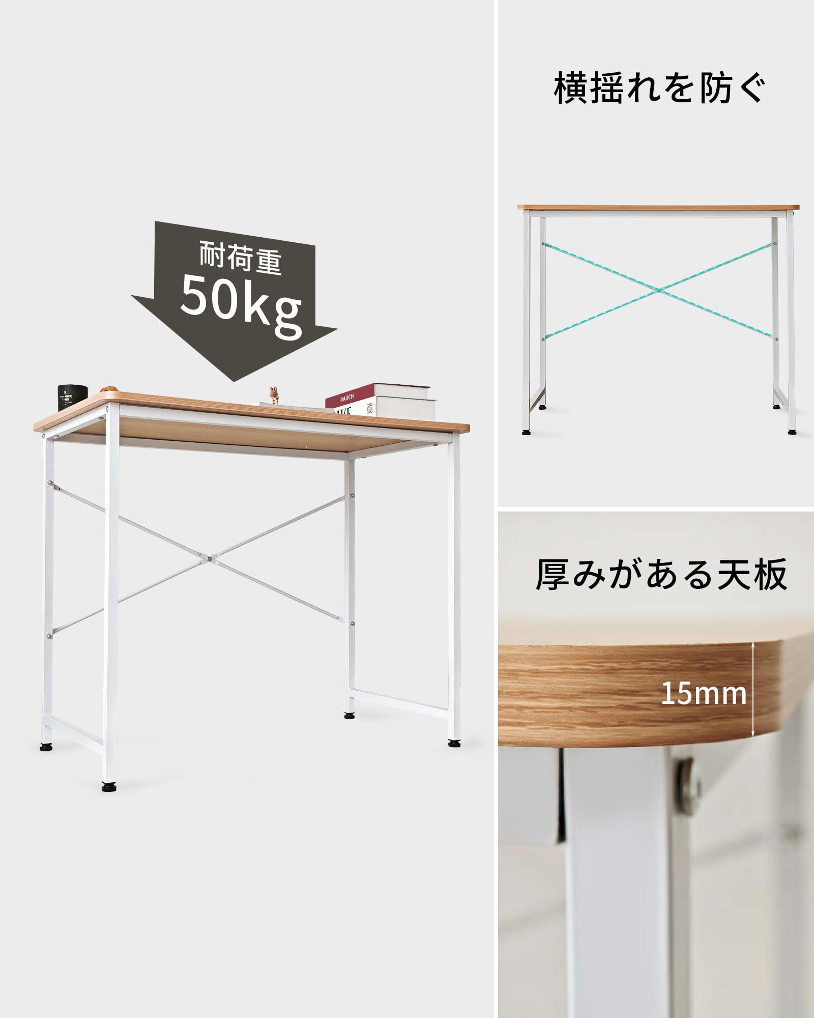 Auromi 机 PCデスク 幅90cm×奥50cm 学習机 勉強机 パソコンテーブル 在宅勤務 作業机 コンパクト つくえ テレワーク テーブル 一人暮らし 白 組立簡単