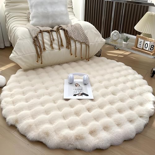GIIPET-ラグ カーペット 冬 ふわふわ 北欧 ラビットファー ラグマット 円形洗える 滑り止め付 防ダニ 抗菌 防臭 優しいフランネルラグ 絨毯 折り畳み 抜け毛無し 無地 シンプル 6色選べる 8年中使えるタイプ 床暖房 ホットカーペット対応(ベージュ、90x90cm)