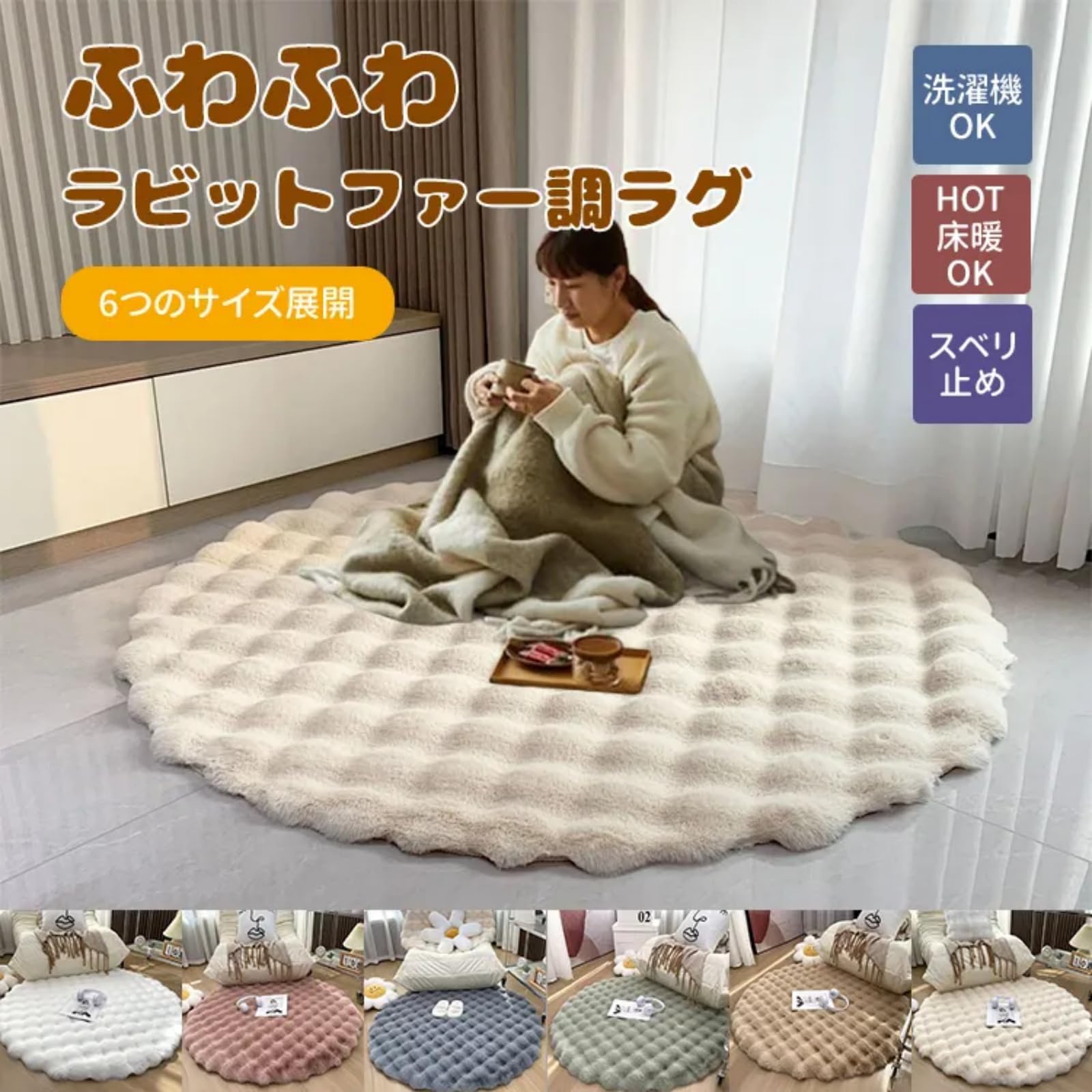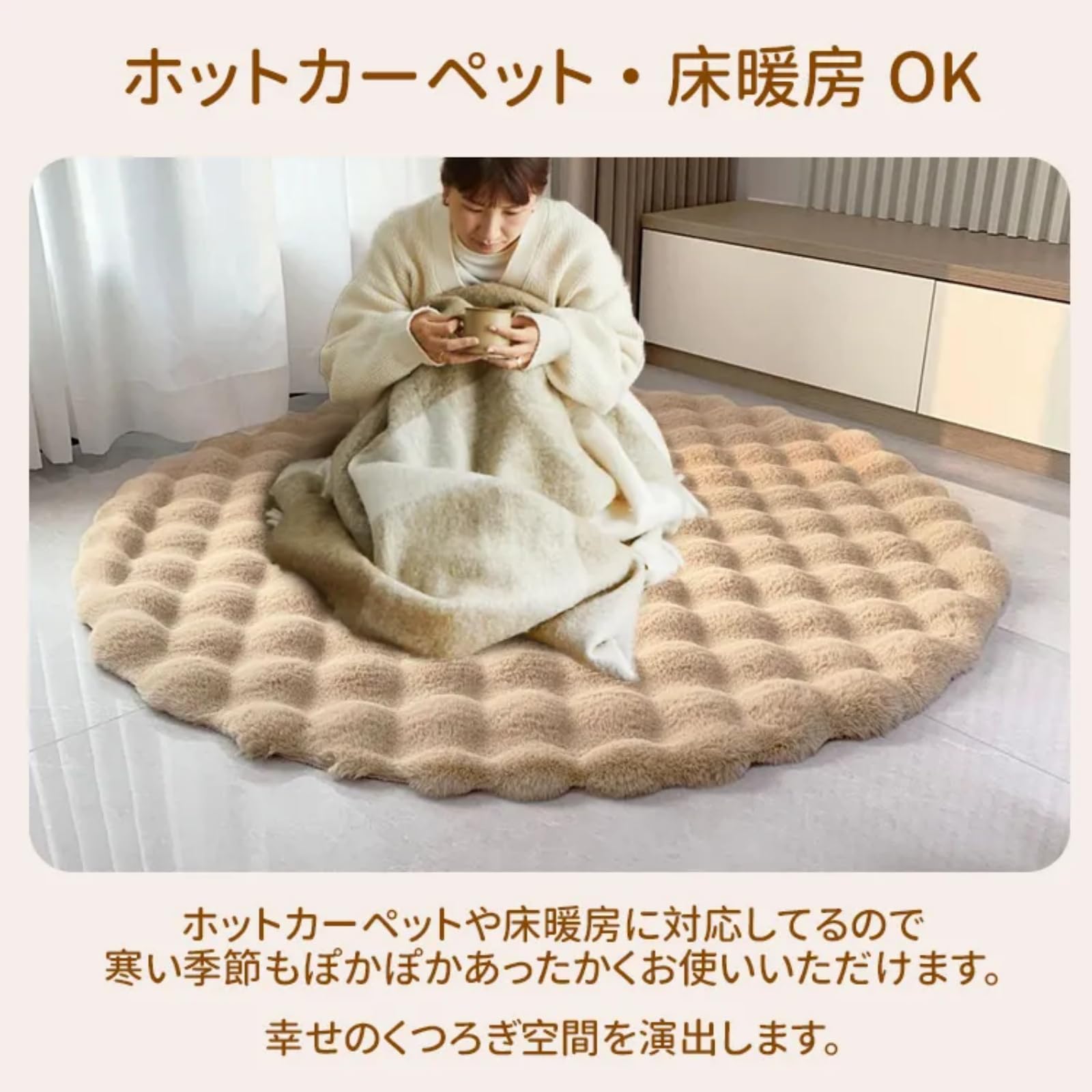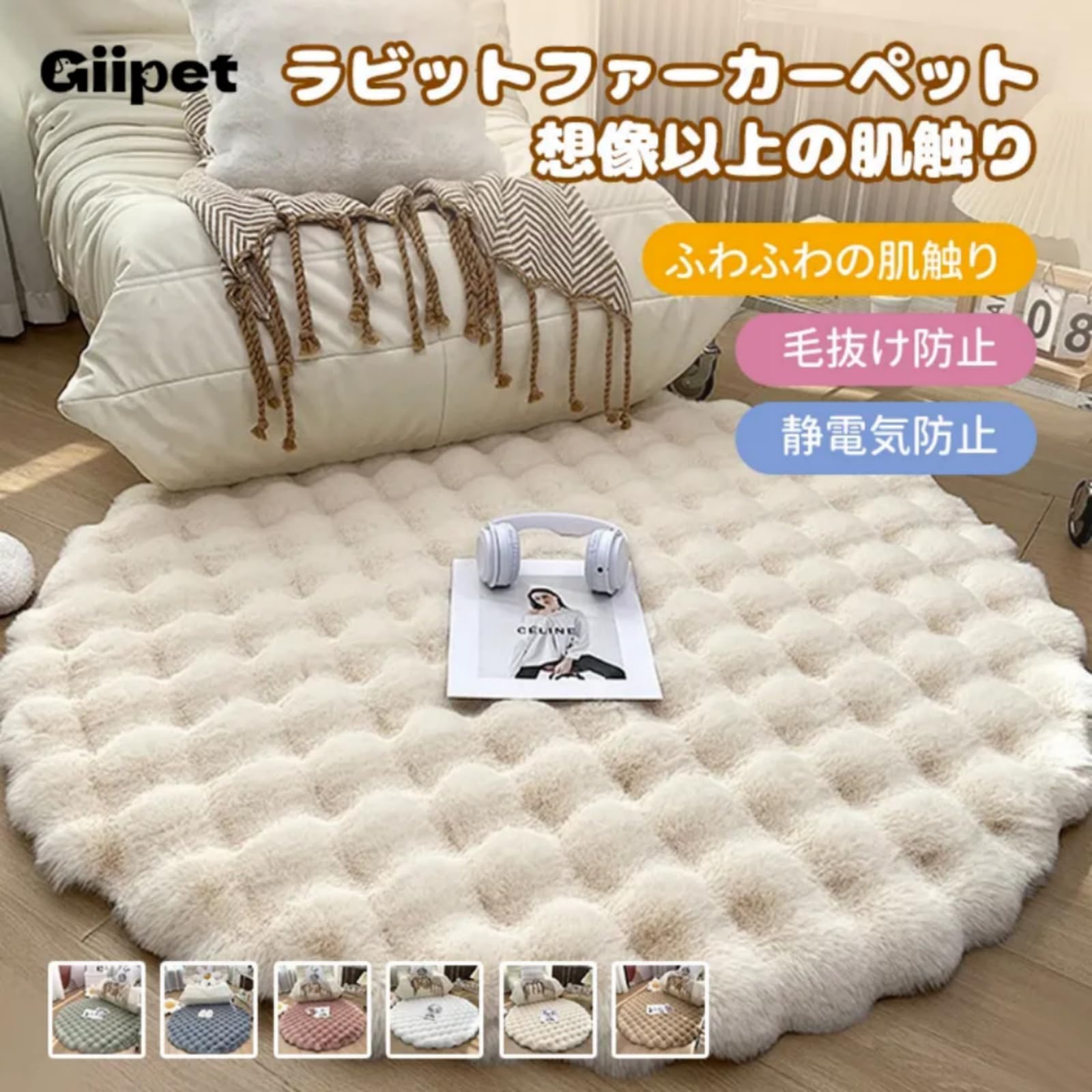 GIIPET-ラグ カーペット 冬 ふわふわ 北欧 ラビットファー ラグマット 円形洗える 滑り止め付 防ダニ 抗菌 防臭 優しいフランネルラグ 絨毯 折り畳み 抜け毛無し 無地 シンプル 6色選べる 11年中使えるタイプ 床暖房 ホットカーペット対応(ベージュ、110*110cm)
