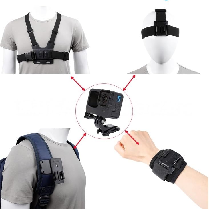 Insta 360 X5 用アクセサリーキット チェストマウントヘッドストラップハーネスバックパッククリップホルダーリストストラップ Insta360 One X5/X4/X3/X2、GoPro Hero 9用