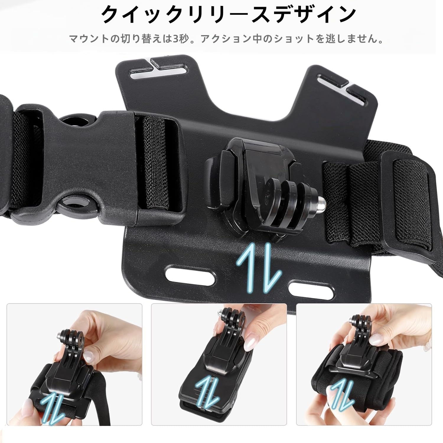 Insta360 X5、X4、X3、X2、Xカメラ用の多目的アクセサリーキットで、アクティブな撮影をサポートします。チェストマウントは胸部にカメラを固定し、アクションシーンの撮影に最適です。ヘッドストラップハーネスで視点撮影が可能になり、バックパッククリップで簡単に装着できます。360度回転アダプターにより、あらゆる角度での撮影が可能で、リストストラップは安全な携帯を確保します。クイックリリース機能付きで、素早くカメラの取り付け・取り外しができ、撮影シーンの切り替えがスムーズです。耐久性のある素材で作られており、アウトドアでの使用に適しています。様々な撮影スタイルに対応する総合的なアクセサリーセットで、Insta360カメラの活用の幅を広げます。