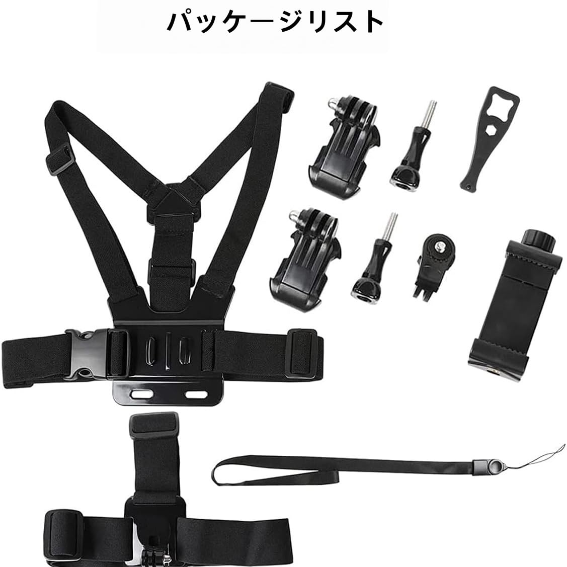 スマートフォン用チェストストラップマウントキット, GoPro Hero/AKASO/DJI Osmo/INSTA360アクションカメラ対応, POV/VLOG撮影用ハーネスホルダー, ヘッドストラップ付き