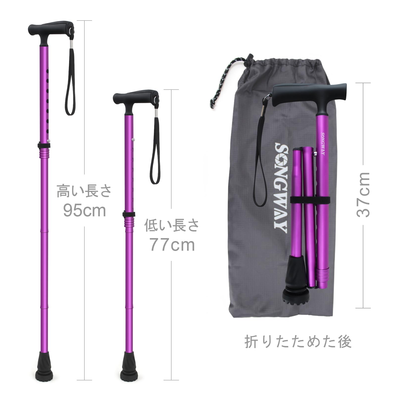 ビグアレクス(BigAlex) 杖 折りたたみ杖 ステッキ 伸縮杖 軽量 アルミ 長さ調整可能 高齢者 夜間散歩 歩行支援 収納袋付き 母の日 父の日 敬老の日 プレゼント (ピンク)