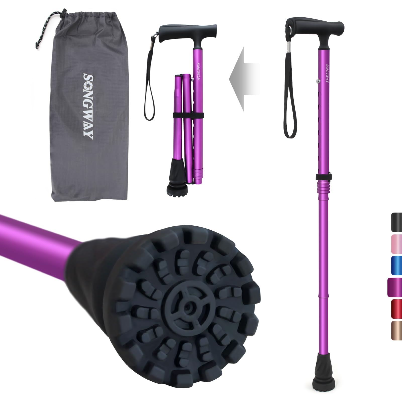 BTtime 折りたたみ杖 【理学療法士&医師&看護師監修】 折りたたみ ホルダー 伸縮式杖 歩行支援 アルミニウム製 5段階調整 超軽量 携帯に便利 男女兼用 登山用 介護用 【検査機関の強度試験に合格】85-95cm