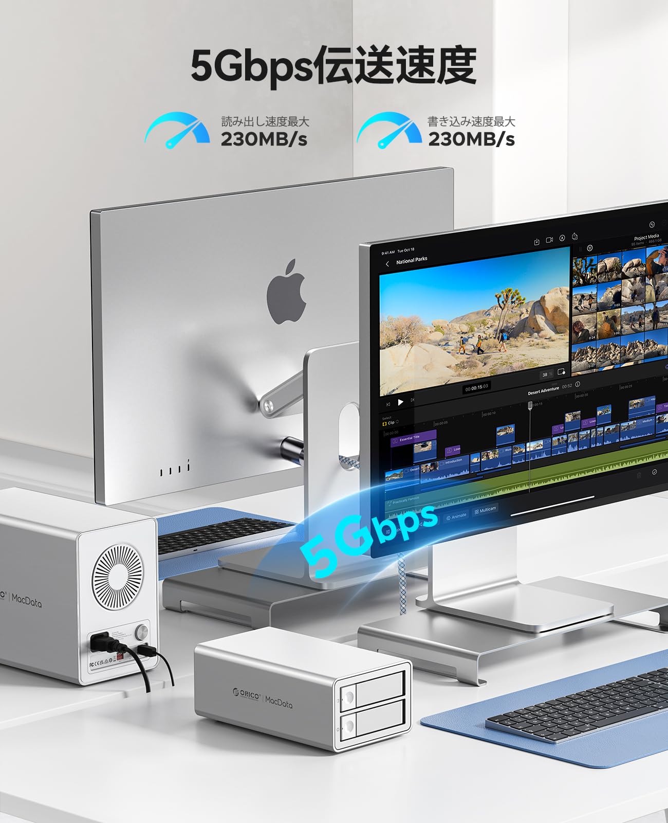 ORICO 【RAID機能】 HDDケース 5台 22TB*5 USB 3.0 マルチ RAIDモード 2.5/3.5インチ HDD 外付けケース ブラケット付き 冷却ファン搭載 アルミ合金ボディ ハードディスク ベイ UASP対応 150W内蔵式電源 9958RU3