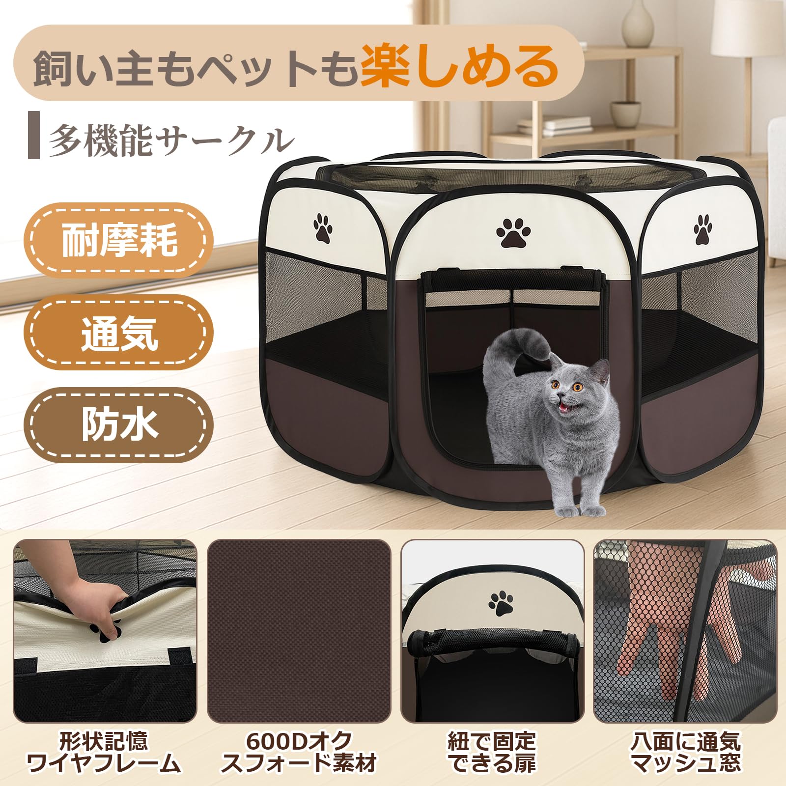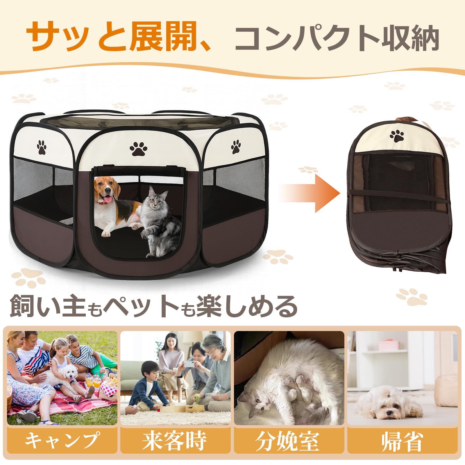Floving 八角形ペット 折りたたみサークル 猫 サークル プレイサークル ペットテント 犬 ゲージ 折りたたみ ペットハウス ペット用ケージ サークル ケージ アウトドア コンパクト 屋外 屋内 犬 メッシュサークル お出かけ用品(S(73*73*43cm), ブラウン(Brown))