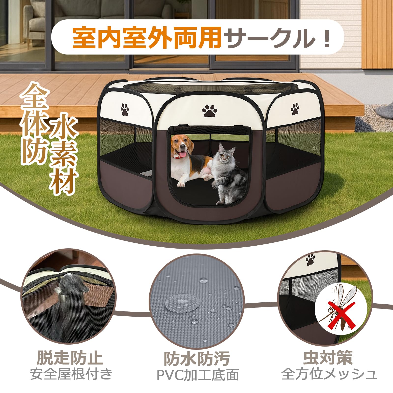 petsfit 折りたたみサークル 八角形 プレイサークル 犬猫兼用 猫の分娩室 メッシュ 屋根付き 屋内 屋外 収納バッグ付き S/M/L ピンク/ブラウン/ブルー 選択可能