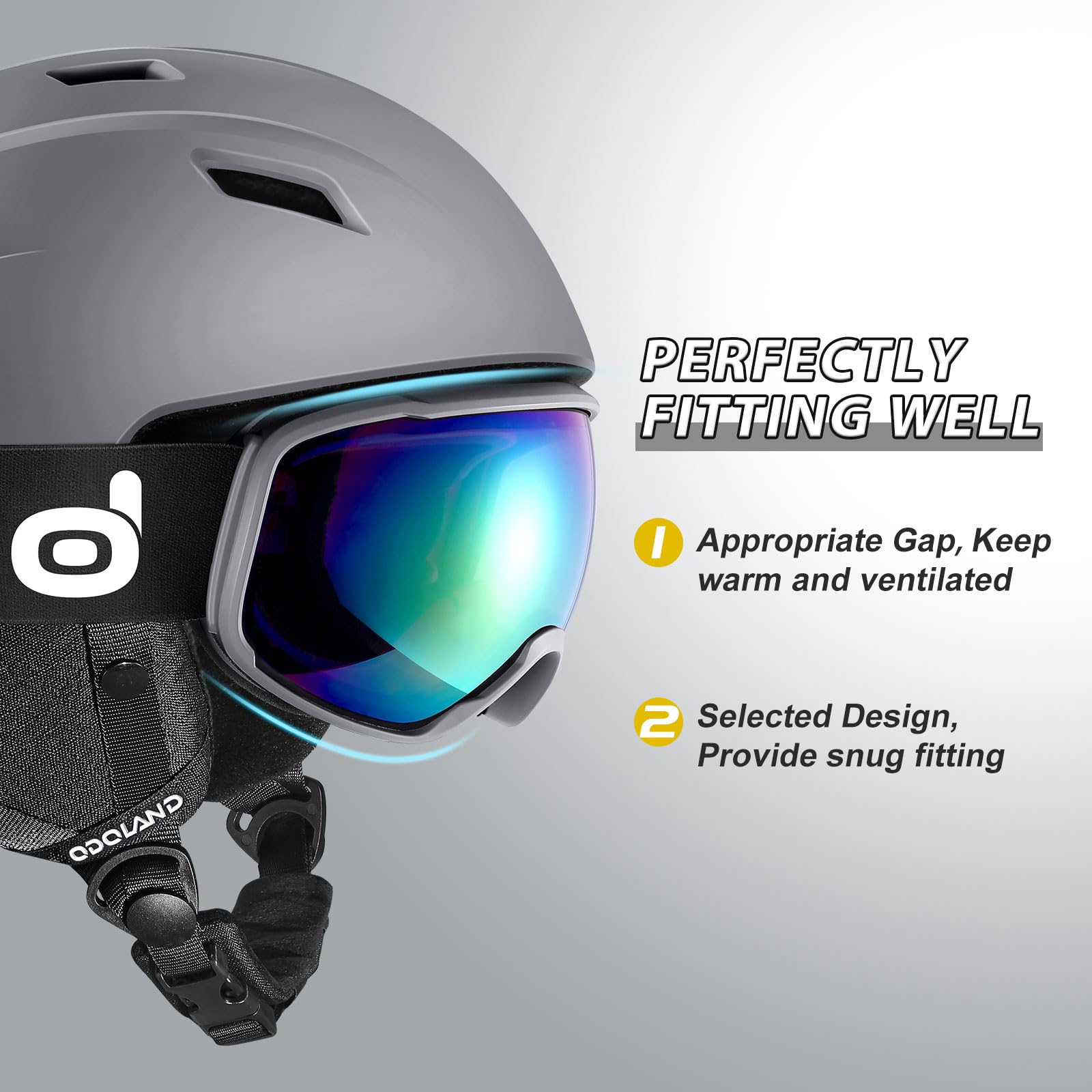 Odoland スキーヘルメットセット ゴーグル付き スノーボードヘルメット ダイヤル式サイズ調整 メガネ対応 ダブル球面レンズ 防風 曇り止め 耐衝撃 UVカット 大人用 男女兼用 パープル S
