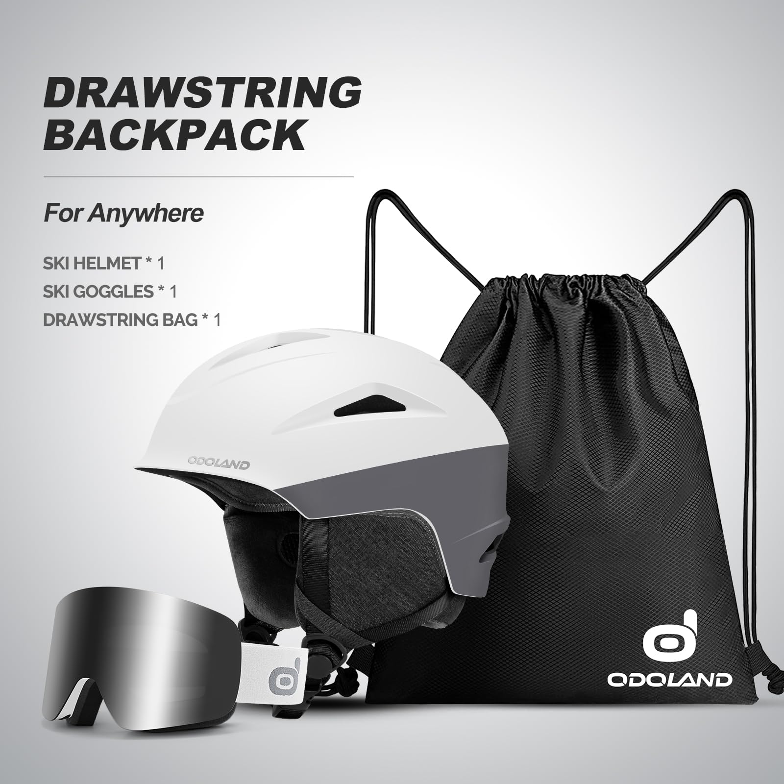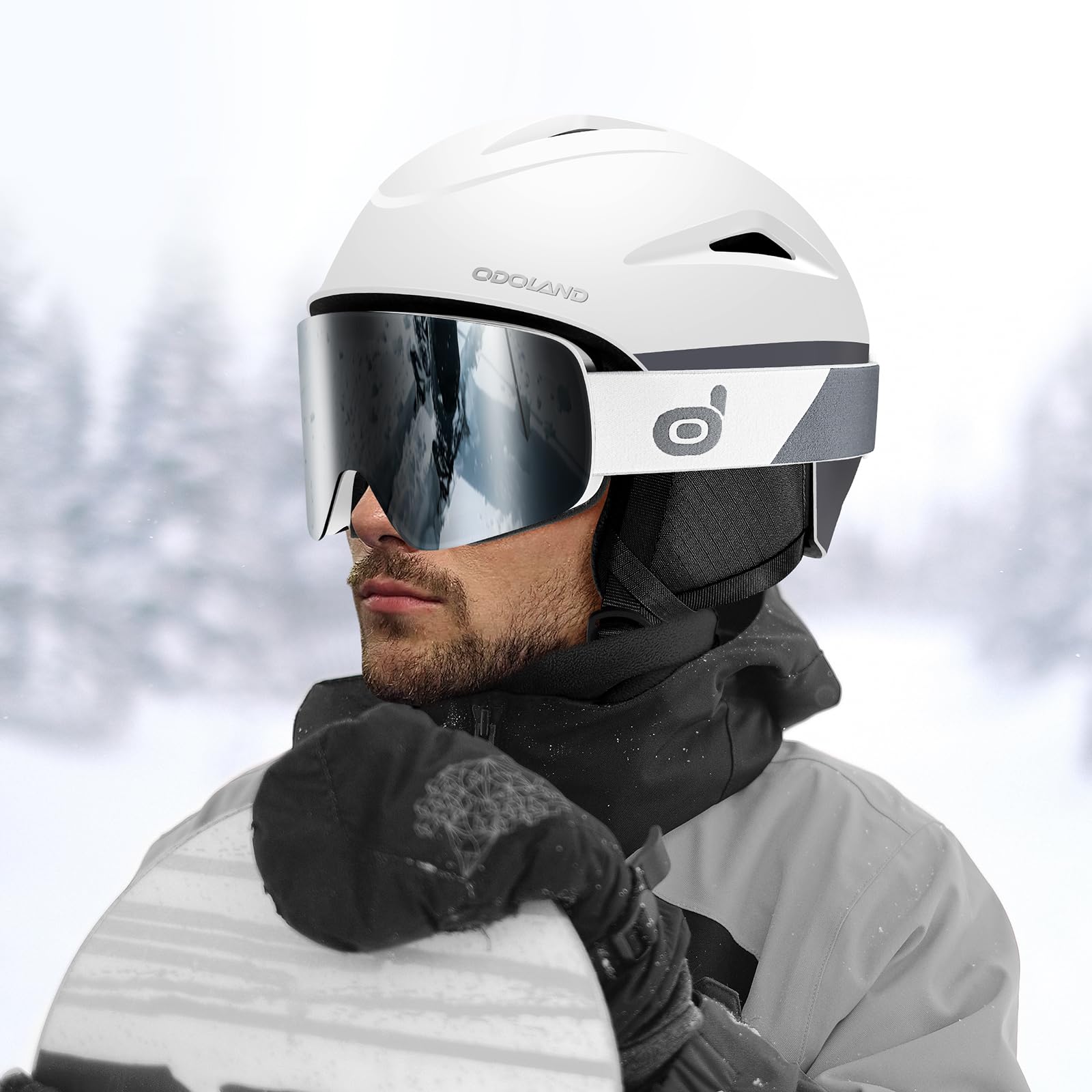 Odoland スキーヘルメット+スノーゴーグルセット ダイヤル式サイズ調整 スノーボードヘルメット メガネ対応 平面レンズ 防風 曇り止め 耐衝撃 UVカット 大人用 男女兼用 グレー L