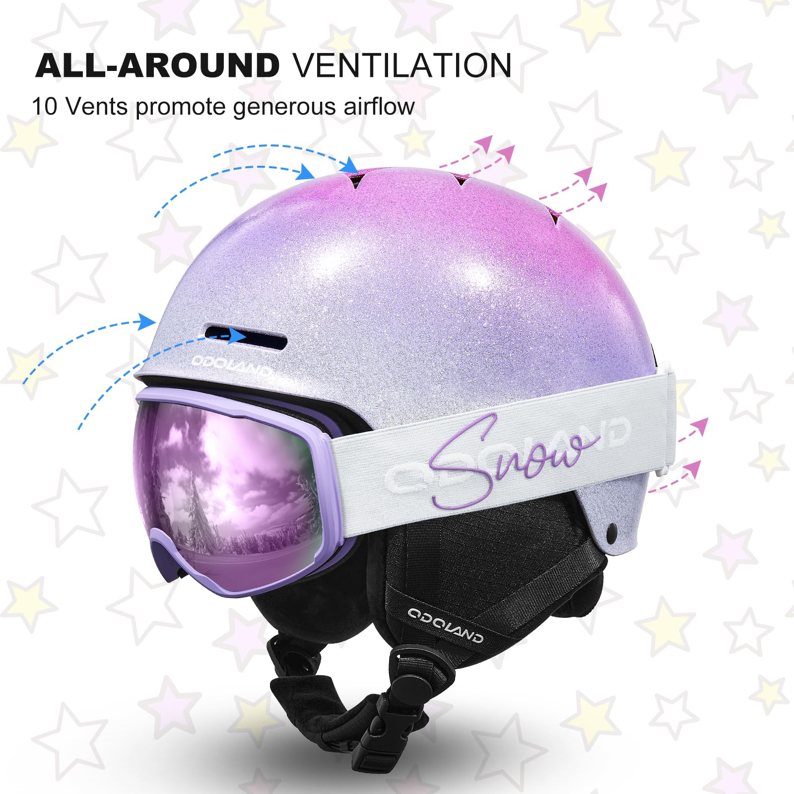 Odoland 子供用スキーヘルメット ゴーグル付き スノーボードヘルメット ダイヤル式サイズ調整 曇り止め 耐衝撃 通気性