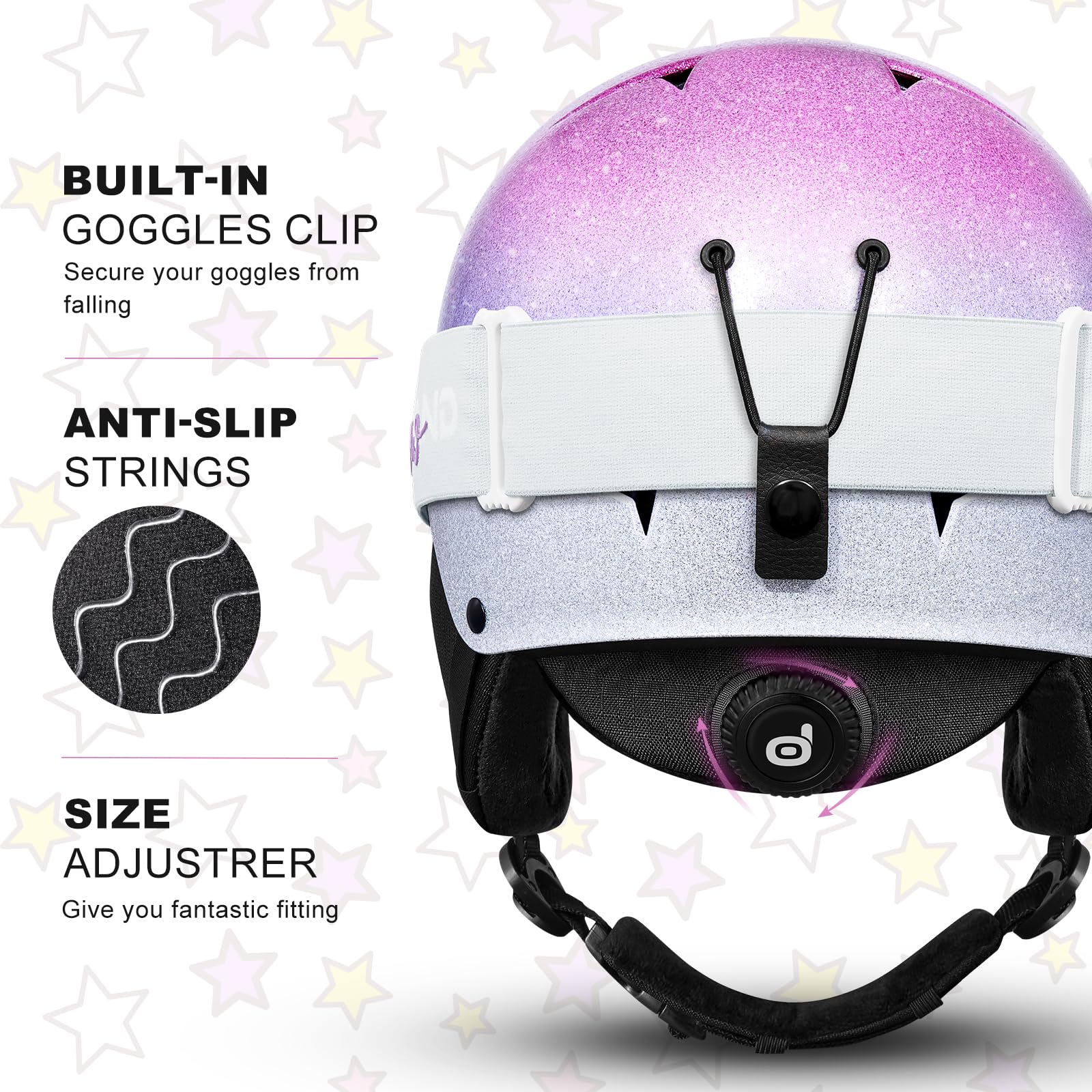 Odoland 子供用スキーヘルメット スノーボードヘルメット ダイヤルフィット ゴーグル対応 通気性 雪ヘルメット ホワイト+ピンク S