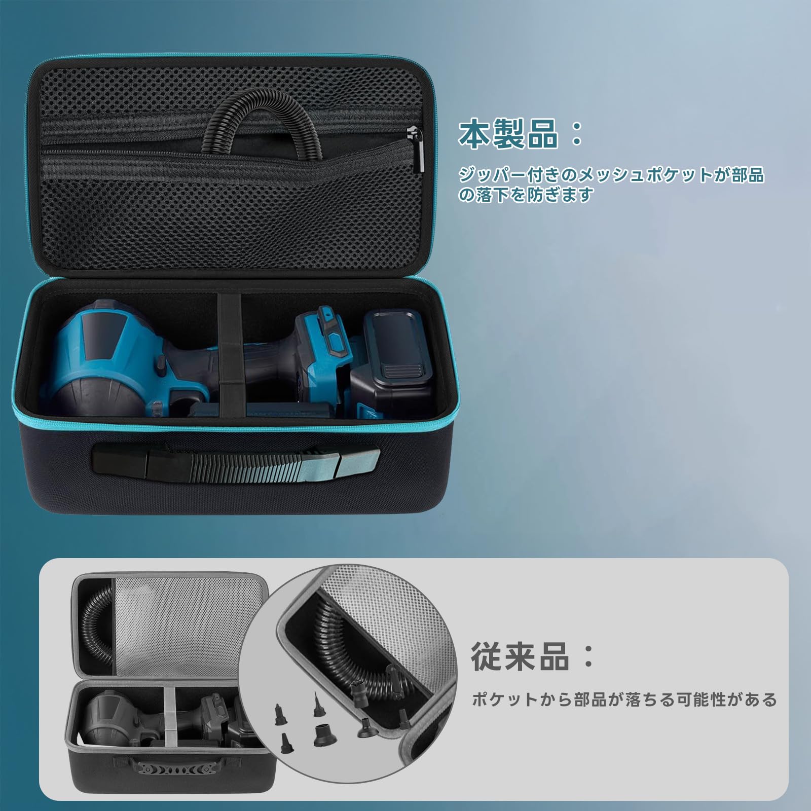 エアダスターケース AS180DZ AS001GZ専用 収納ケース 耐衝撃EVA 充電式エアダスター 収納バッグ (ケースのみ)