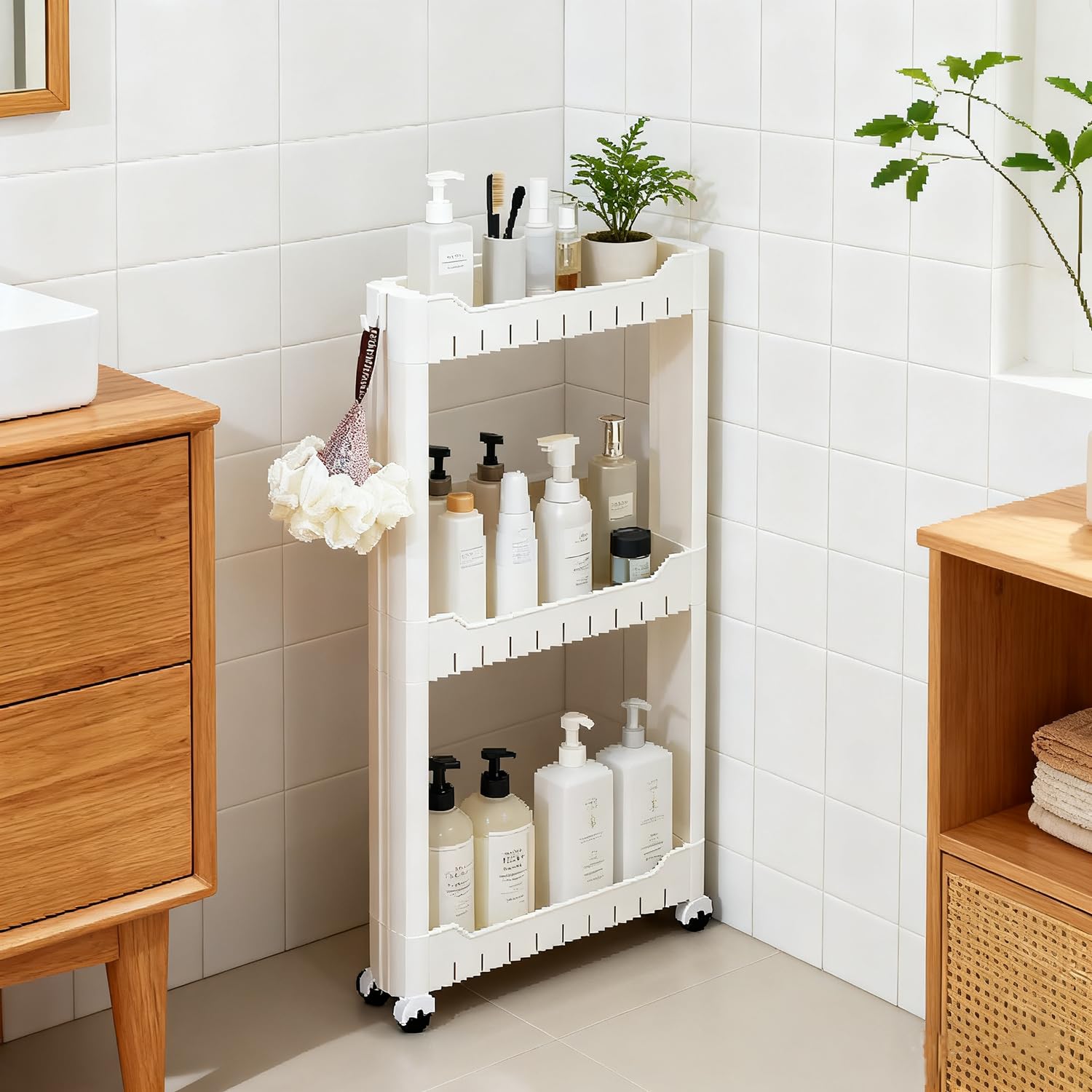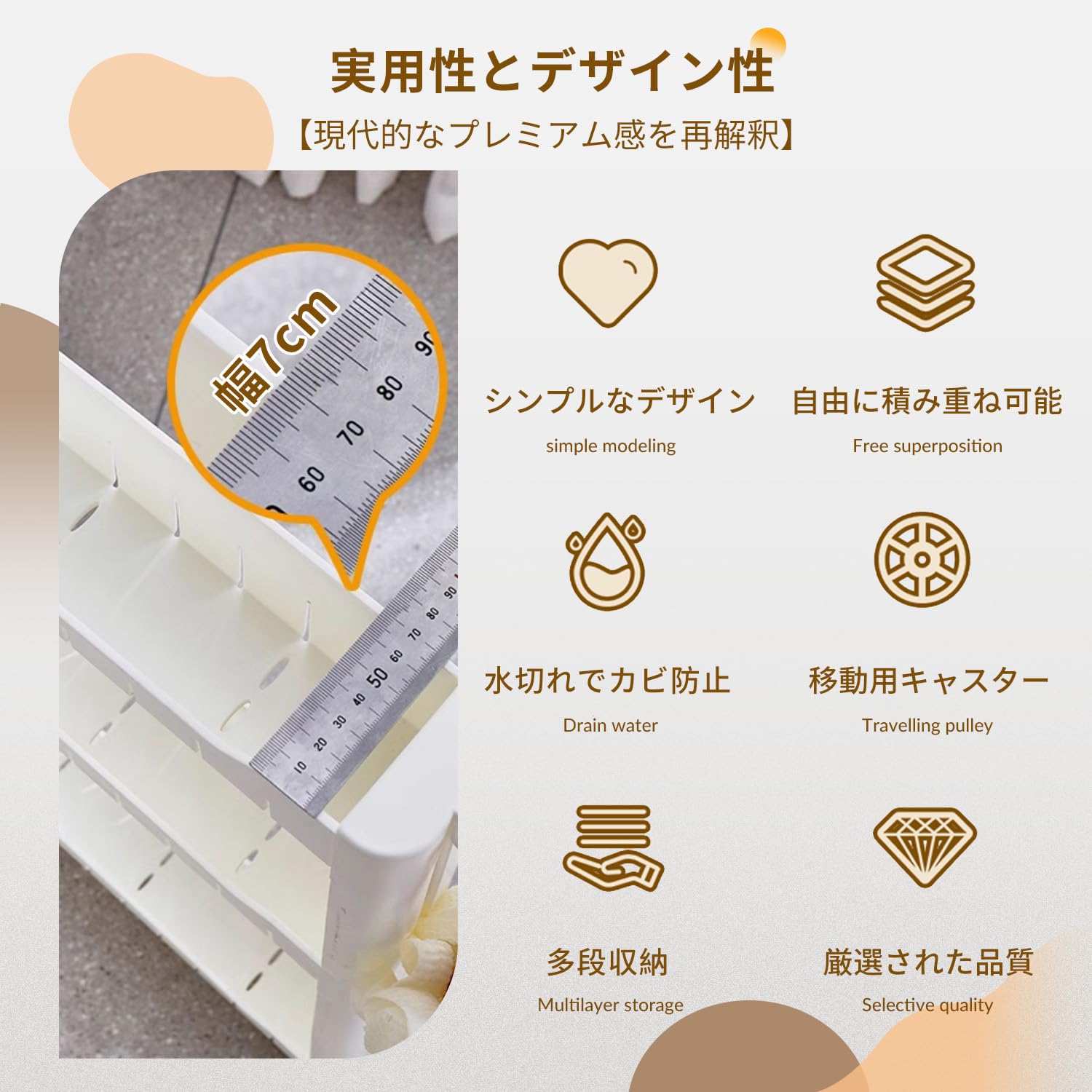 Zilnox キッチンワゴン スリム キャスター付き 4段 隙間収納 頑丈 収納 洗面所 省スペース 組立簡単 幅18x奥行40x高さ101cm ホワイト