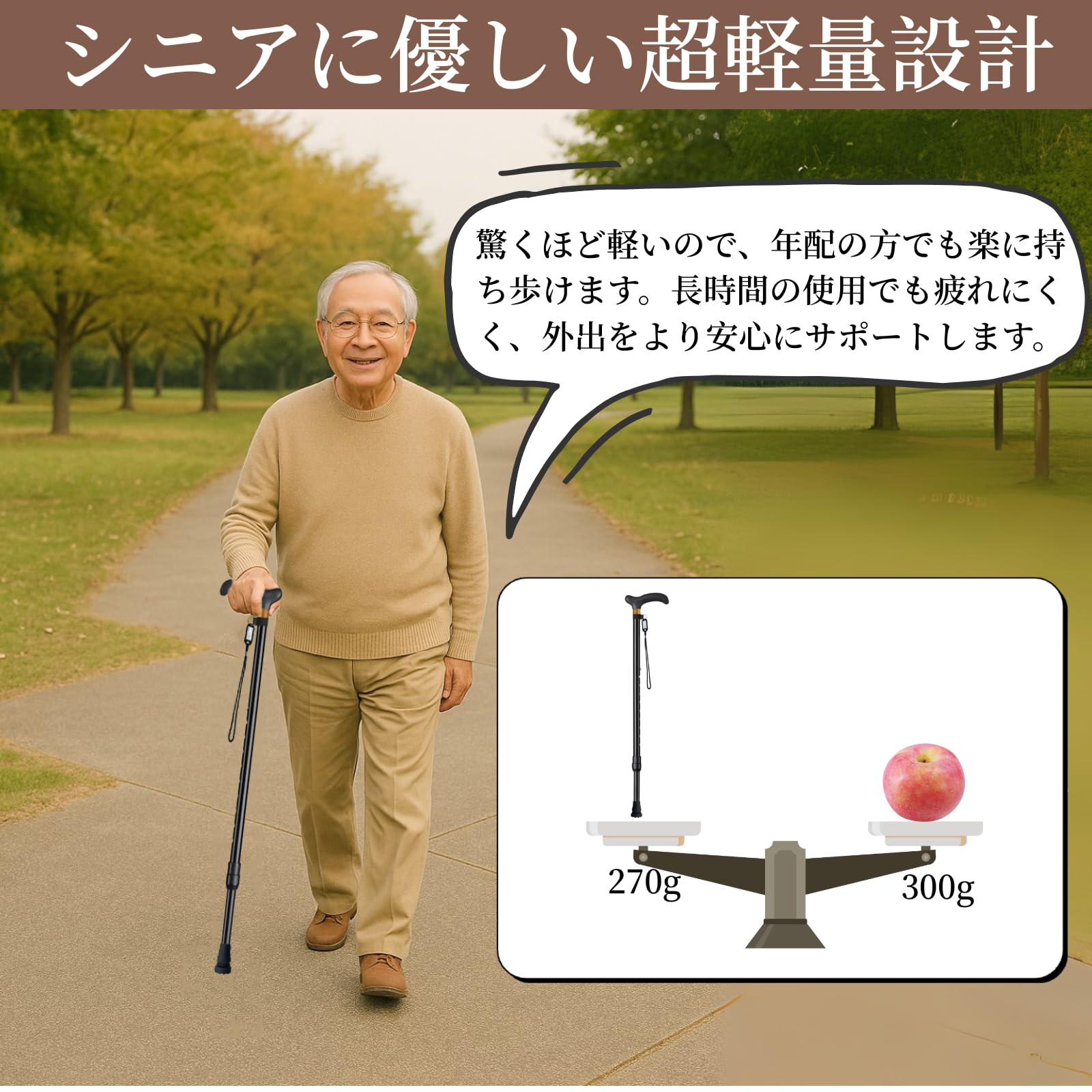 HEALTHBAZAAR 杖 男性用と女性用- 折りたたみ杖 - つえ 高齢者 の軽量 - 敬老の日・母の日・父の日プレゼント (ブラック)