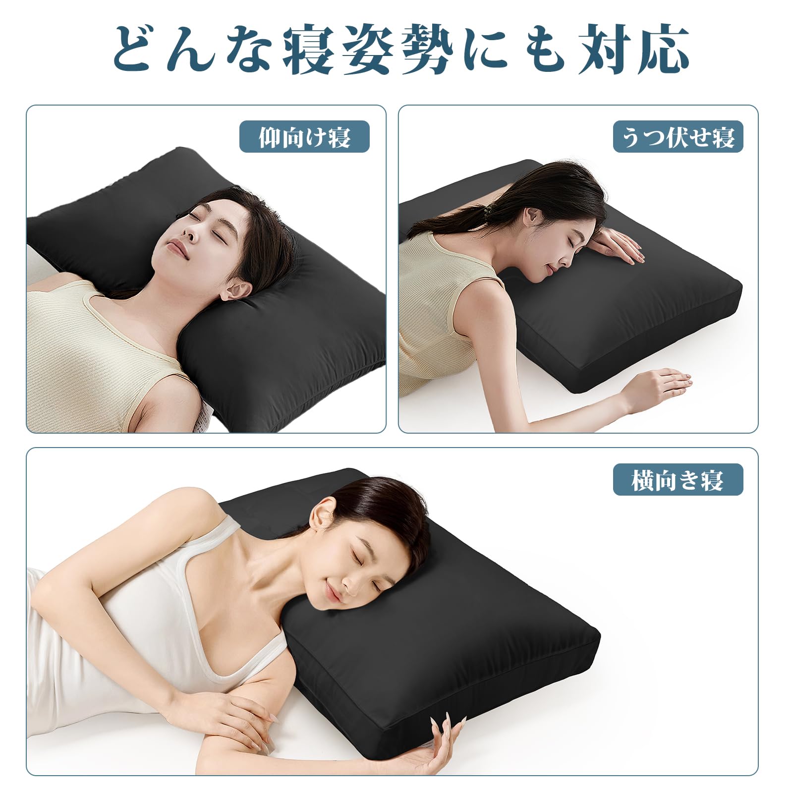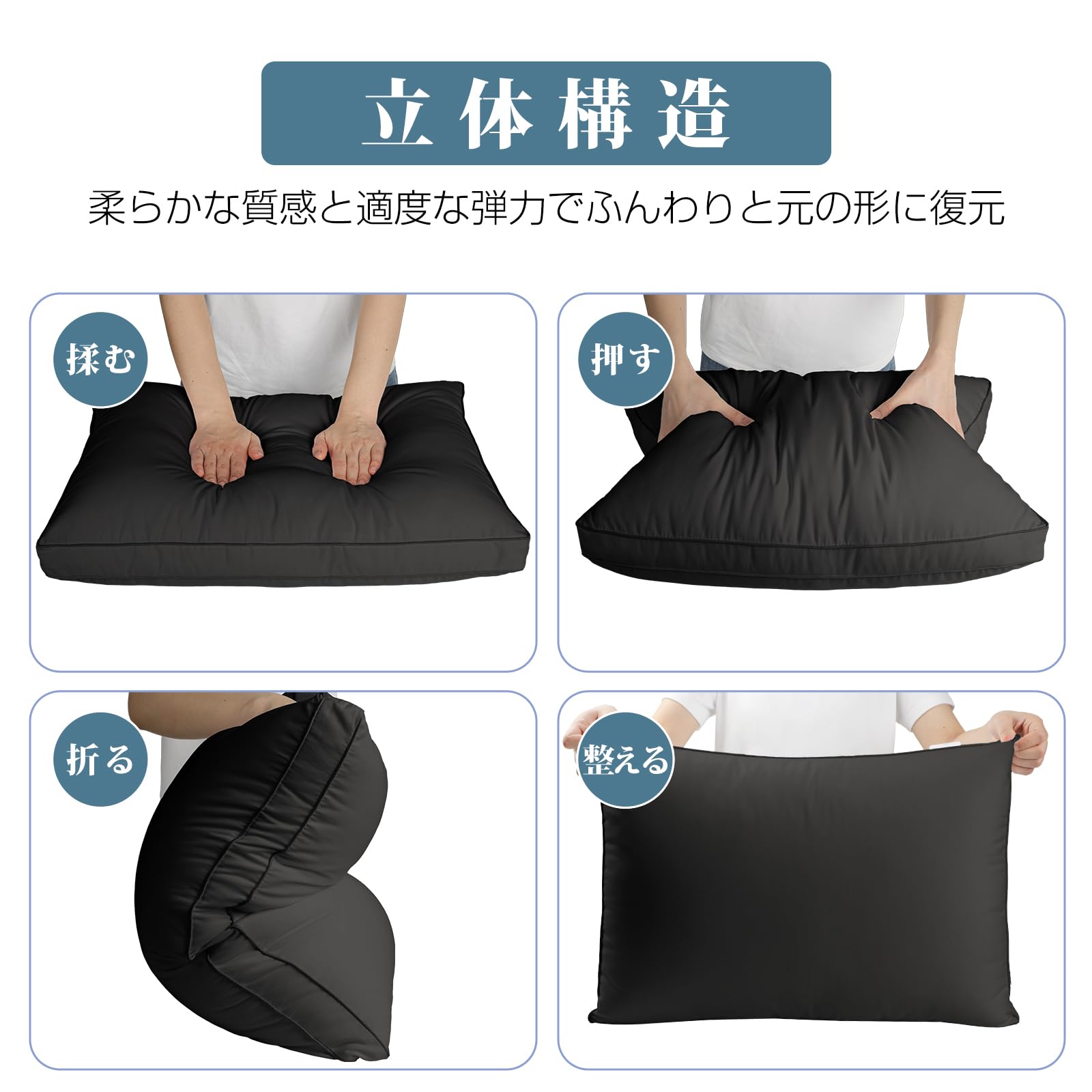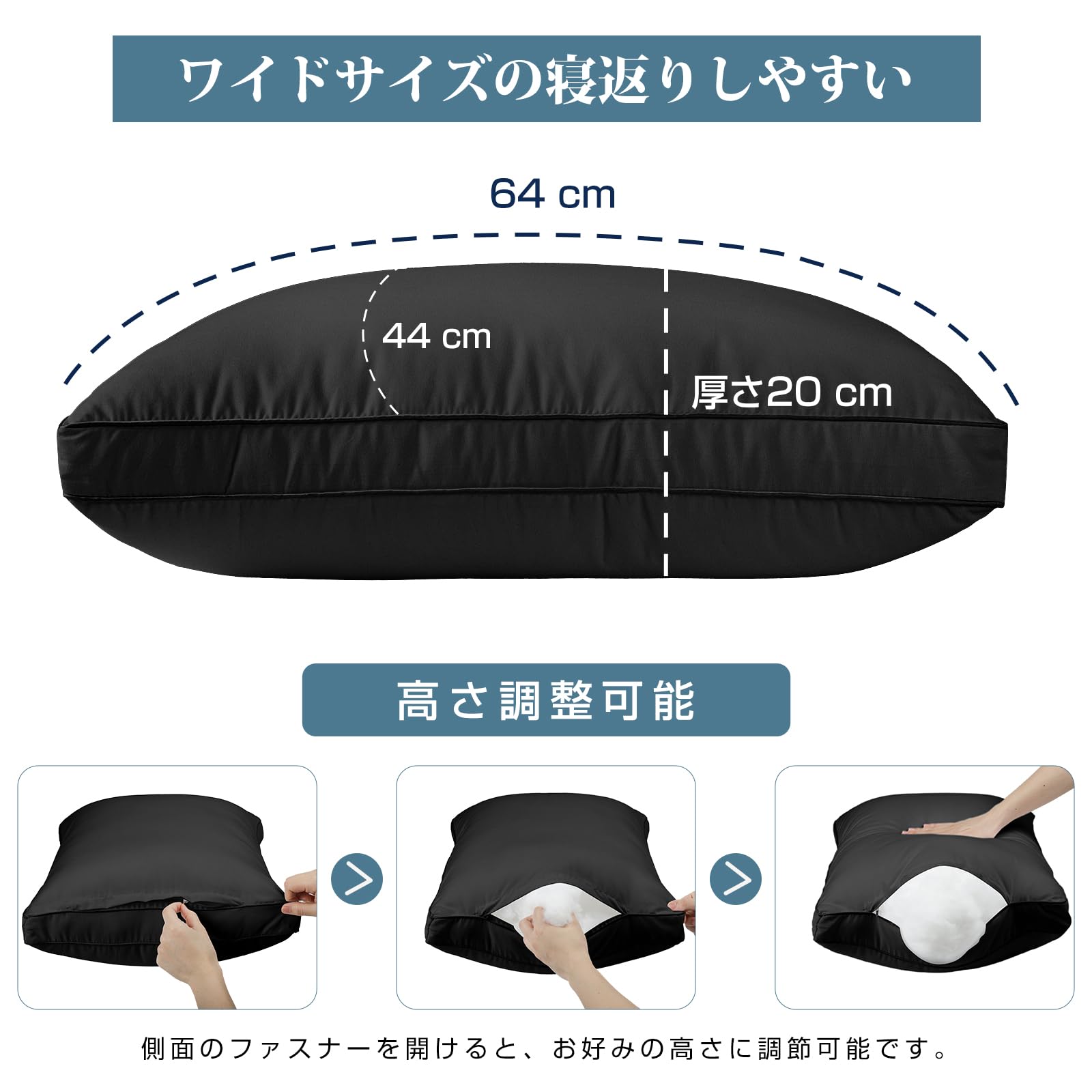 枕 まくら 首が痛くならない ホテル仕様 快眠枕 低め 高め ふわふわ 高さ調整可能 丸洗い可能 横向き寝 立体構造 通気性 63x43cm pillow プレゼント(ブラック)
