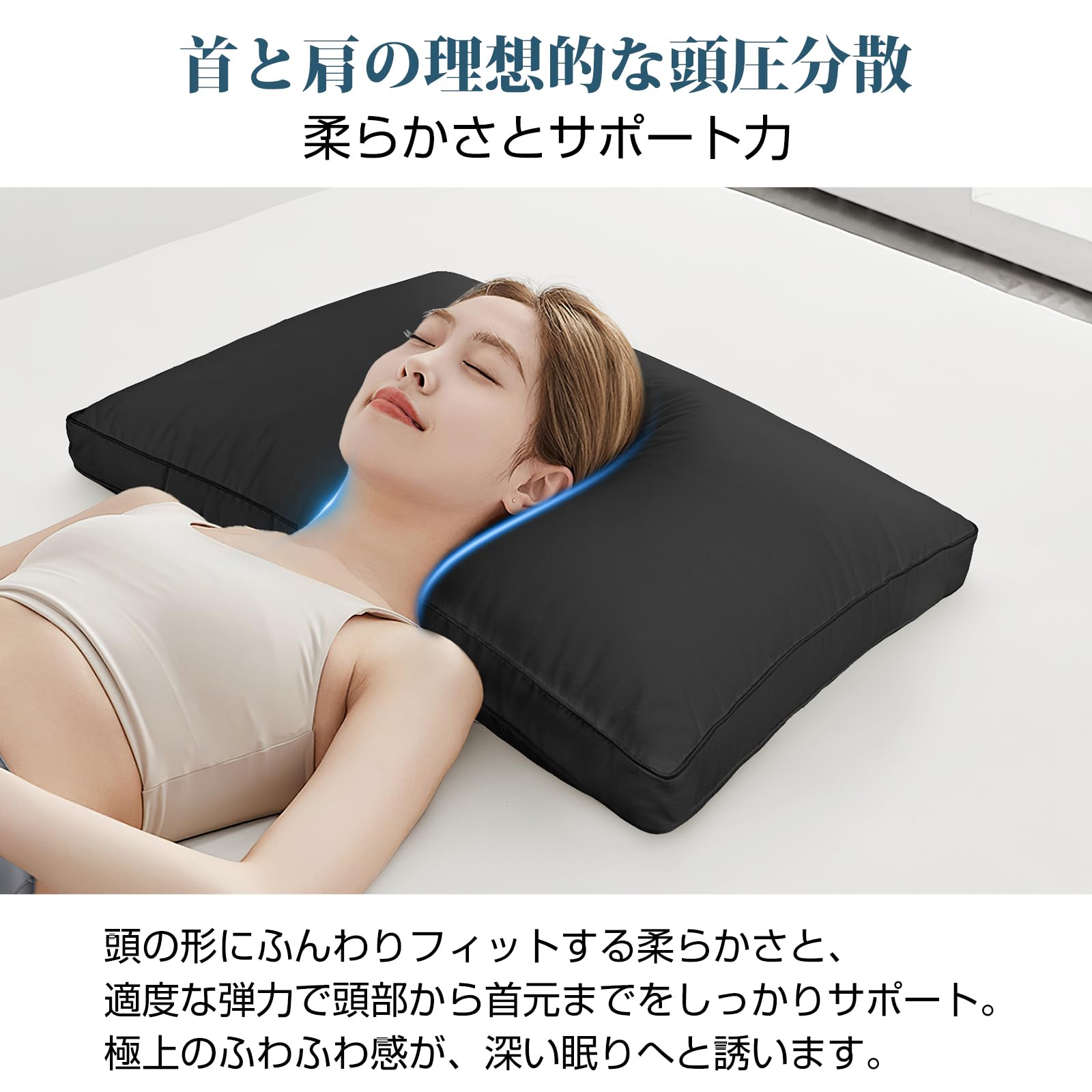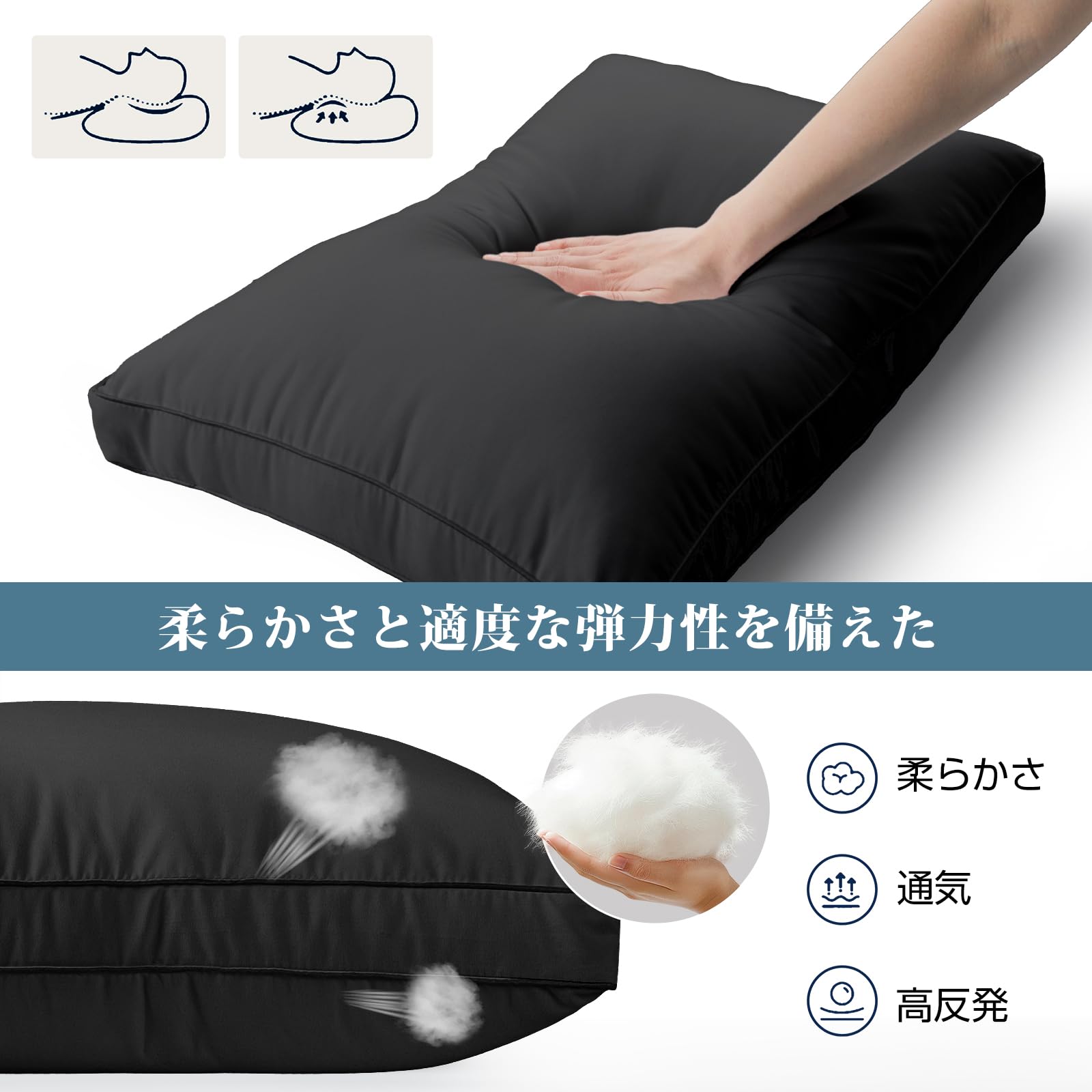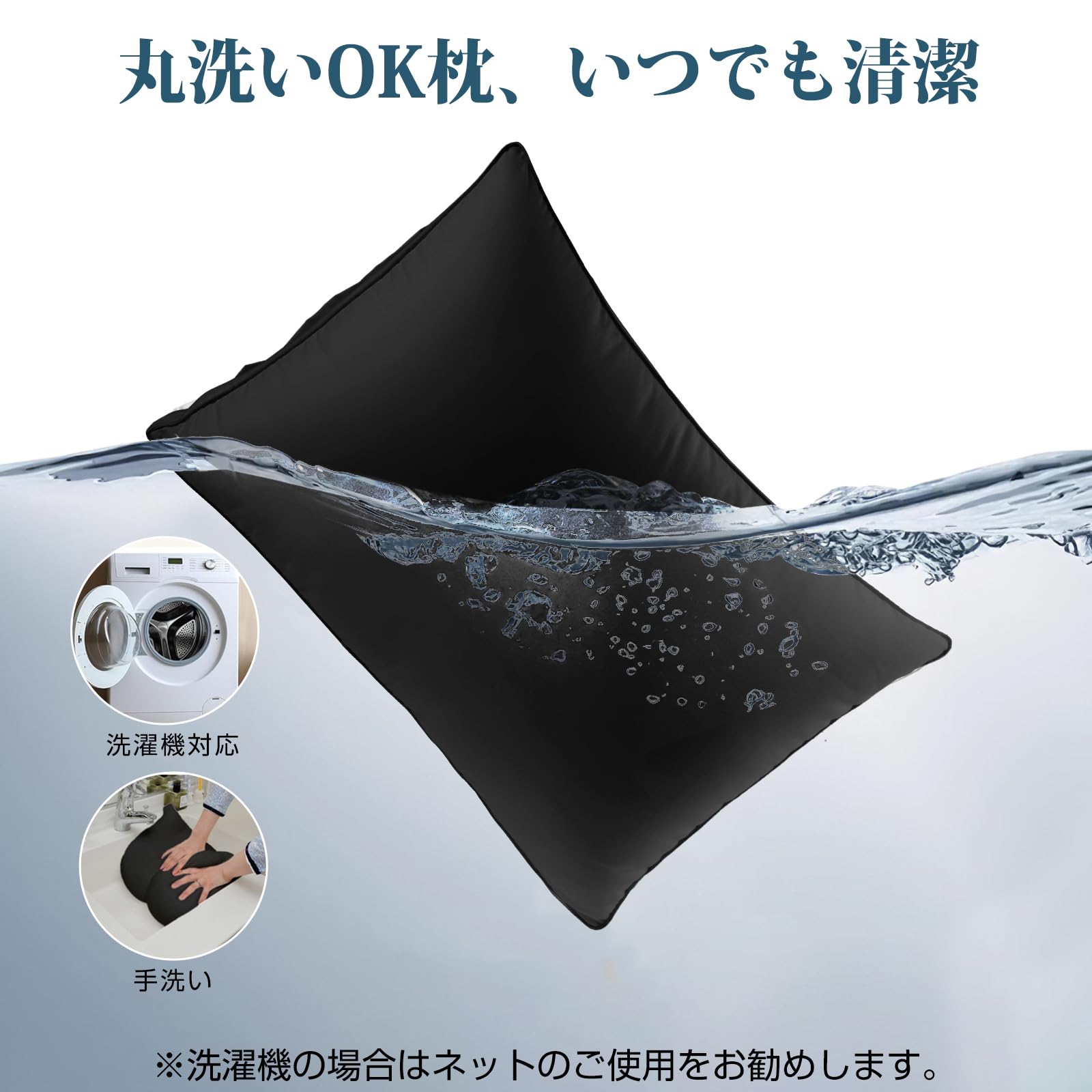 枕 まくら 首が痛くならない ホテル仕様 快眠枕 低め 高め ふわふわ 高さ調整可能 丸洗い可能 横向き寝 立体構造 通気性 63x43cm pillow プレゼント(ブラック)