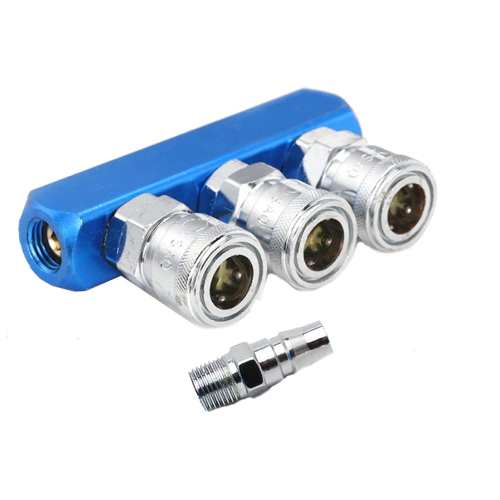 エアーカプラー エアーソケット 3連 エアーチャック ワンタッチ ジョイント エアコンプレッサー カプラー 継手 分岐 防錆 防水 汎用 アルミニウム合金