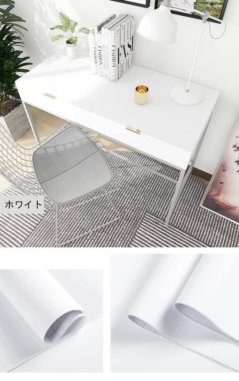 壁紙シール ホワイト 44.5cmx10m リメイクシート無地 はがせる 防水 シート カッティングシート リフォームシート 厚手 おしゃれ 剥がせる 壁紙白 DIY 耐熱(ホワイト)