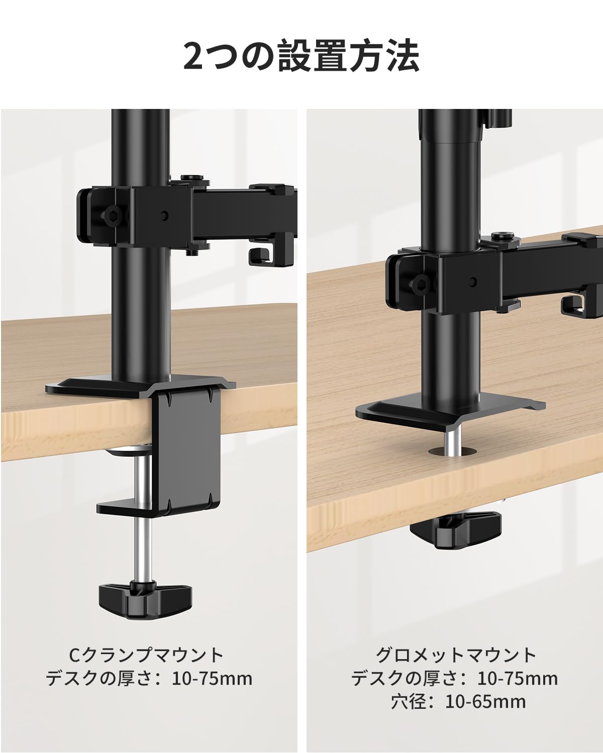 FORGING MOUNT ノートパソコンアーム モニターアーム13~32インチ対応 耐荷重各アーム10KG デュアルディスプレイアーム VESA75*75/100*100 グロメット式&クランプ式 多角度調節 ケーブル収納