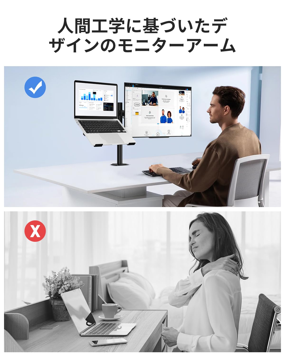 'suptek PC モニター アーム ディスプレイアーム モニターアーム VESAアーム モニタースタンド ガス式 ガススプリング式 グロメット式 クランプ式 13~32インチ対応 耐荷重2~9kg VESA75-100mm 角度調節 ケープル収納 アルミニウム合金製'