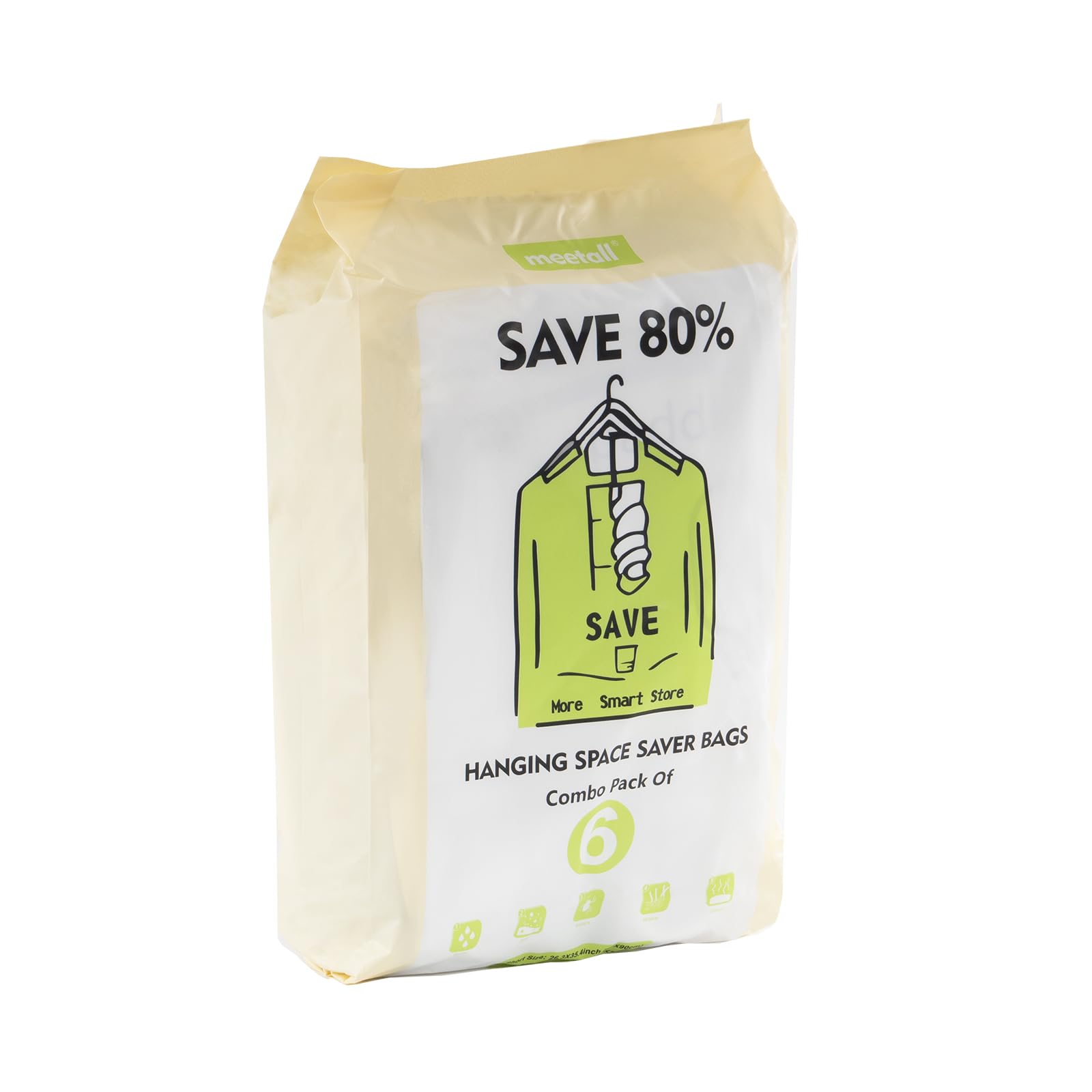 Meetall 6枚セット ハンガー式真空圧縮袋 厚手PA素材 ダブルジッパー 360°回転フック付き 衣類収納 省スペース 67x90cm x3枚 + 67x110cm x3枚