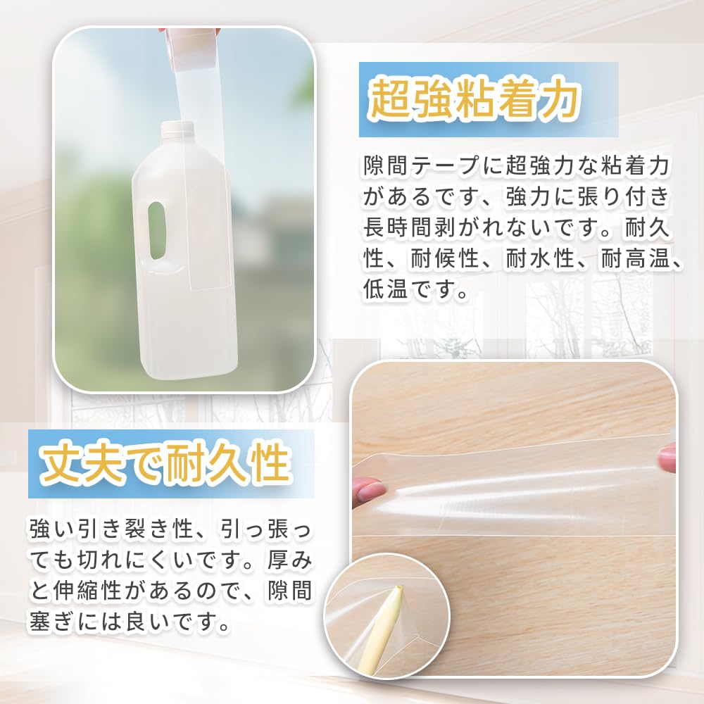 Mr.Carrot 防カビ防水テープ マスキングテープ 防水テープ 防カビテープ 隙間テープ 強力テープ トイレの隙間フィル ガスコンロ 隙間テープ カビ汚れ防止マスキングテープ 水回り マスキングテープ 浴槽まわり 洗面台 コンロ トイレ隙間 窓の隙間補修 (透明 幅3.8cmx長さ3.2m 1ロール入り)