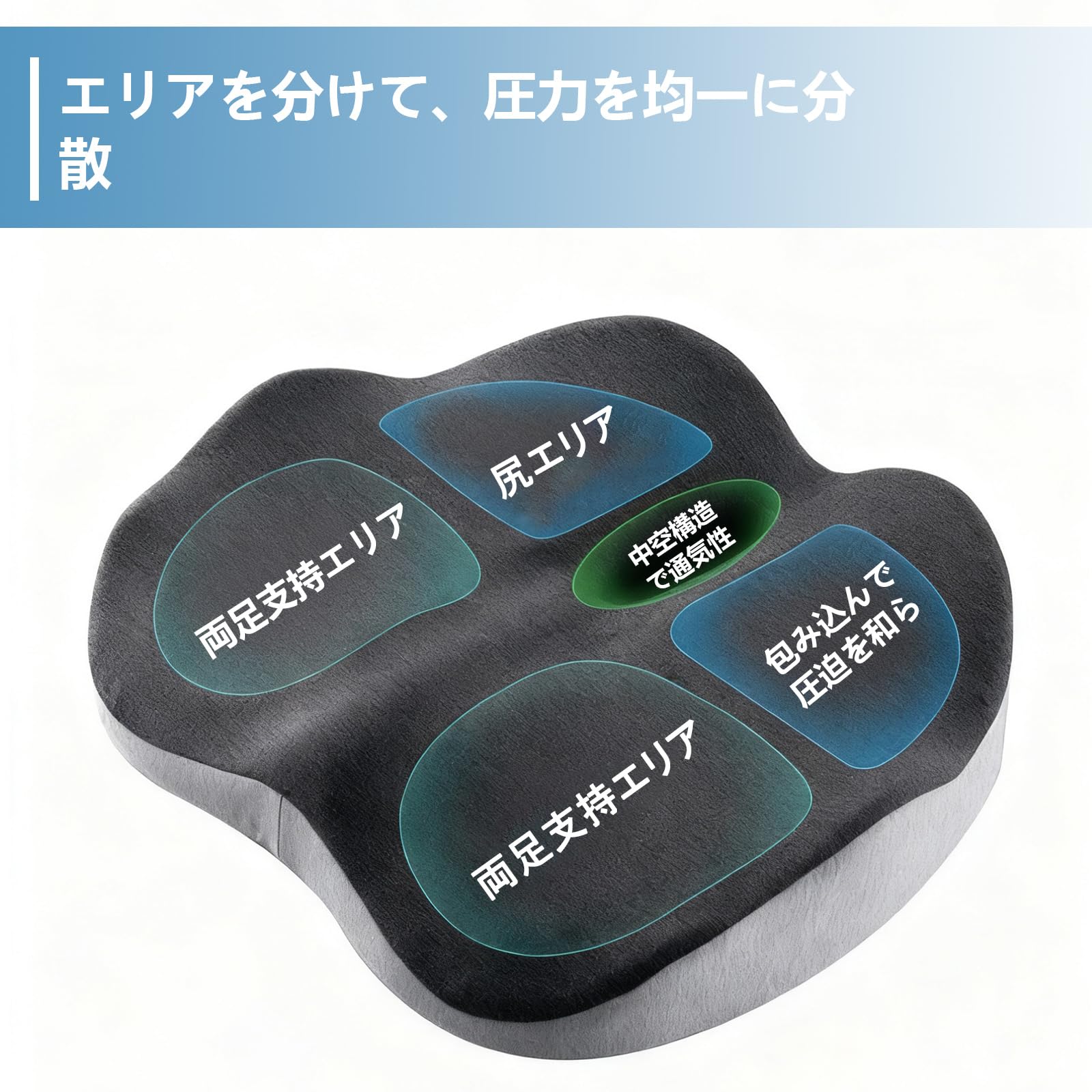 第6世代 クッション 低反発 座布団 骨盤矯正 姿勢矯正 痔 通気 ートクッション 滑り止め オフィス/車中/車椅子/自宅 (附带専用3Dアイマスク付き) ブラックグレー