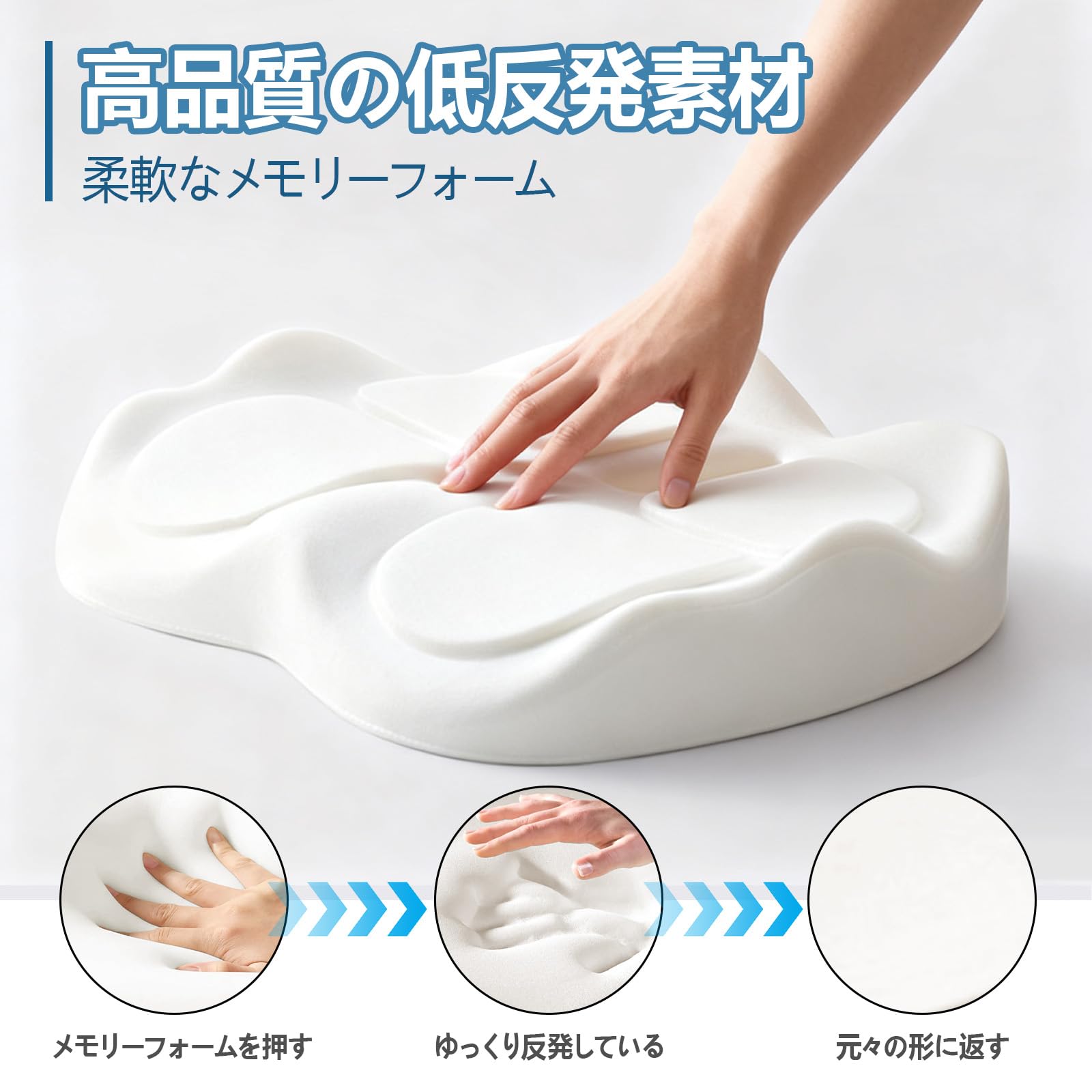 [Innovista] 座面クッション 椅子 座布団 厚さ8cm 背あて クッション 通気性 洗える 中空設計 低反発 体圧分散 オフィス 車 勉強 自宅向け 滑り止め 四季通用
