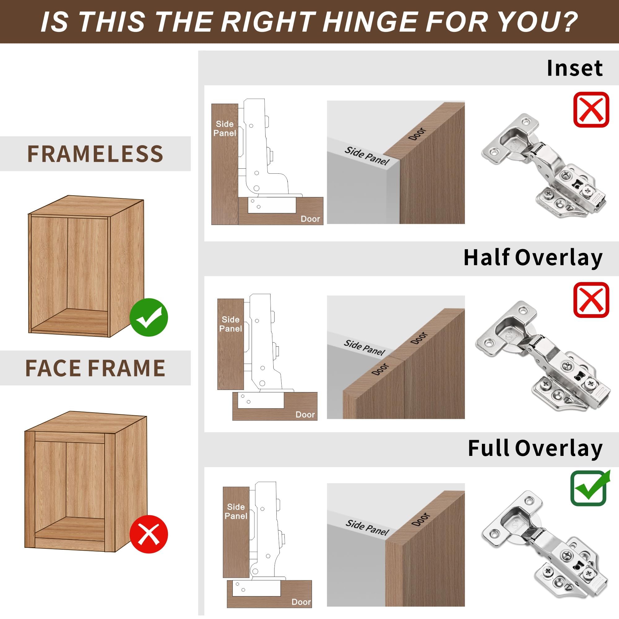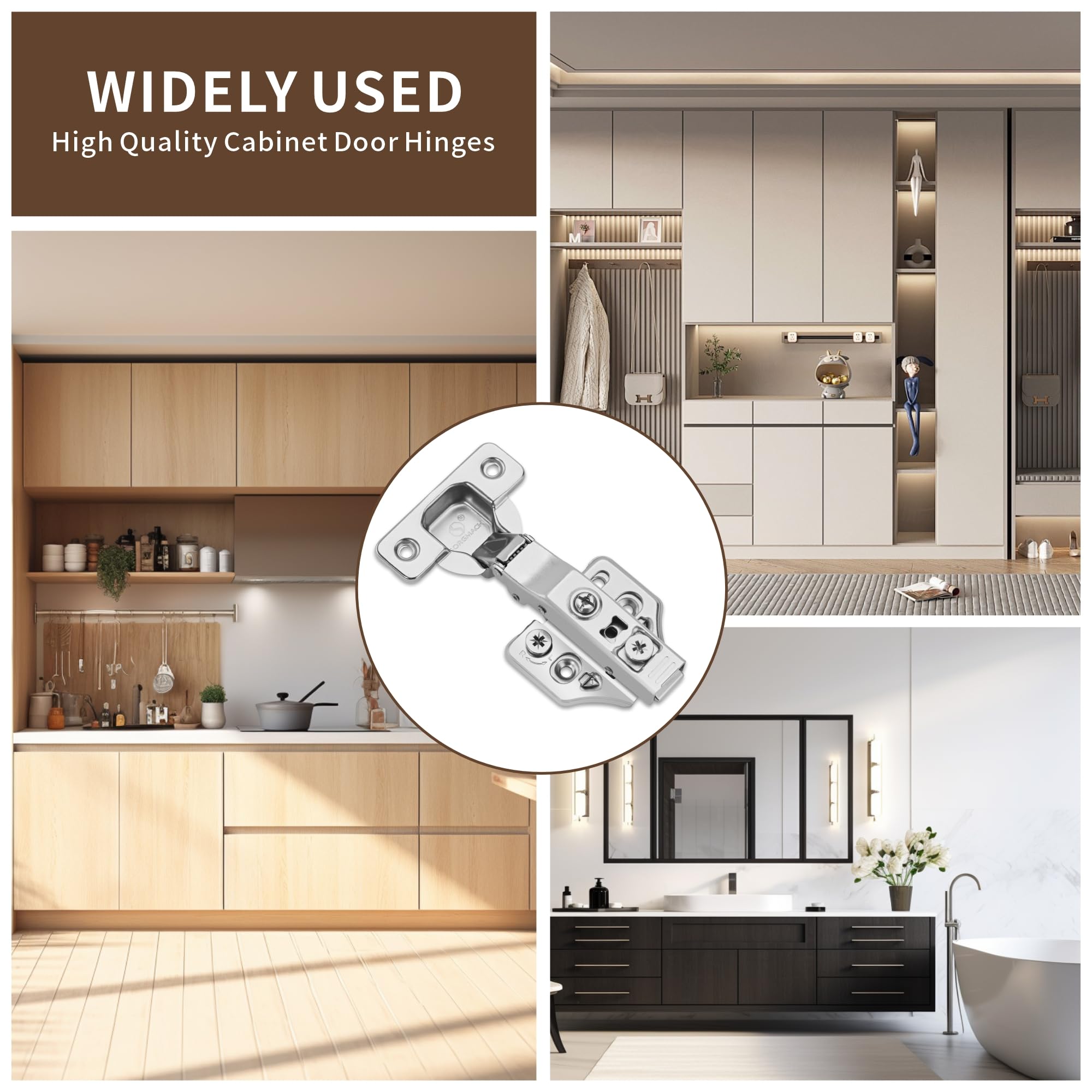 4つのパックの完全なオーバーレイの柔らかい閉じたキャビネットのネネネジ105°フレームレスの3つの方法の調節可能な台所キャビネットのドアのネネネネジがねじが付いている調節可能なキッチンキャビネットのドア