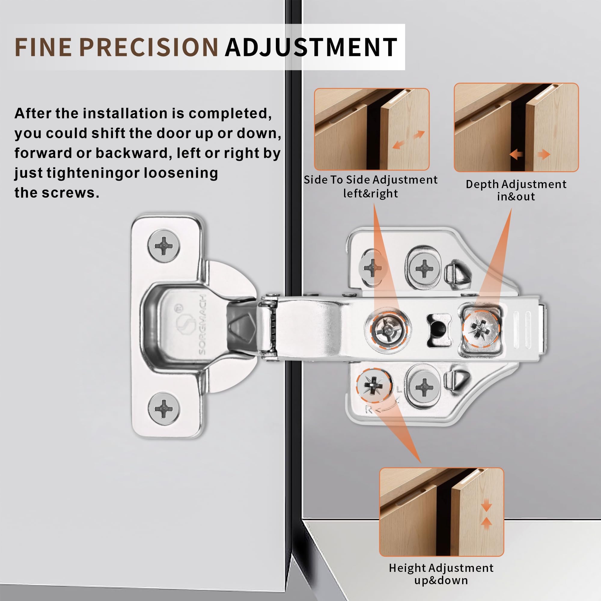 8個セット スライド蝶番 35ミリ 半かぶせ ネジ付き スライド丁番 銅の芯 ヒンジ 油圧式 扉 家具 クローゼット 下駄箱 システムキッチン等に適用 建築部品(全かぶせ)