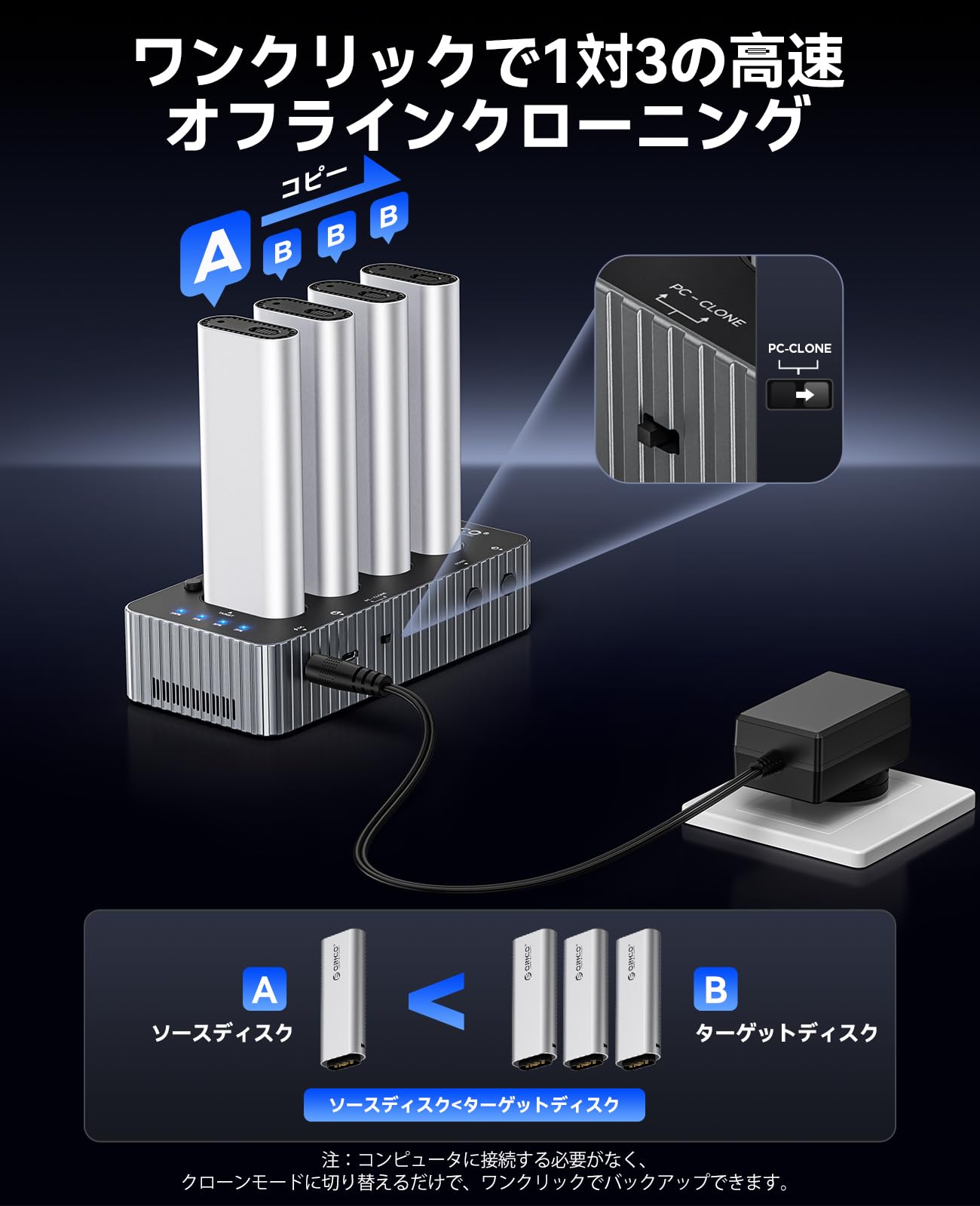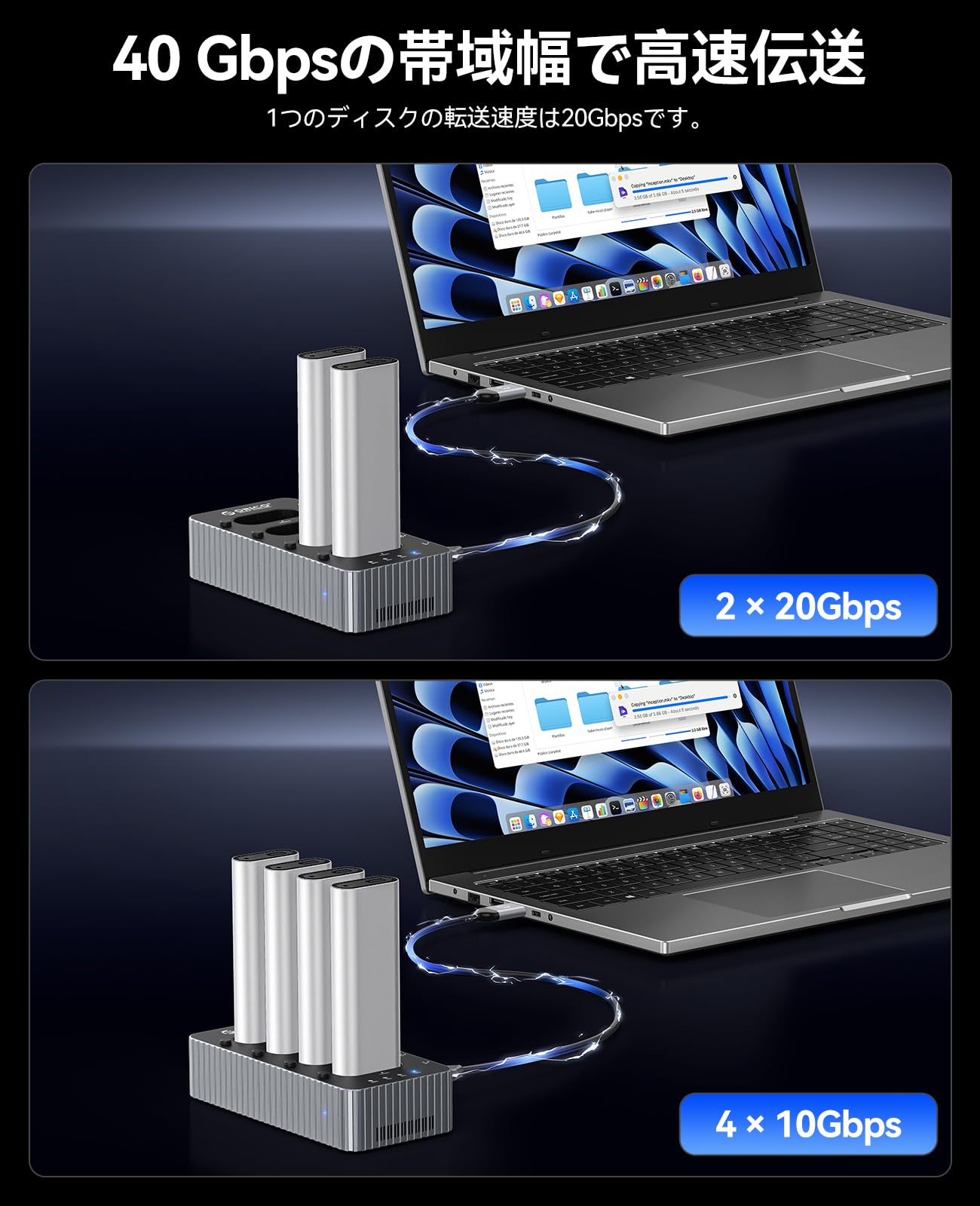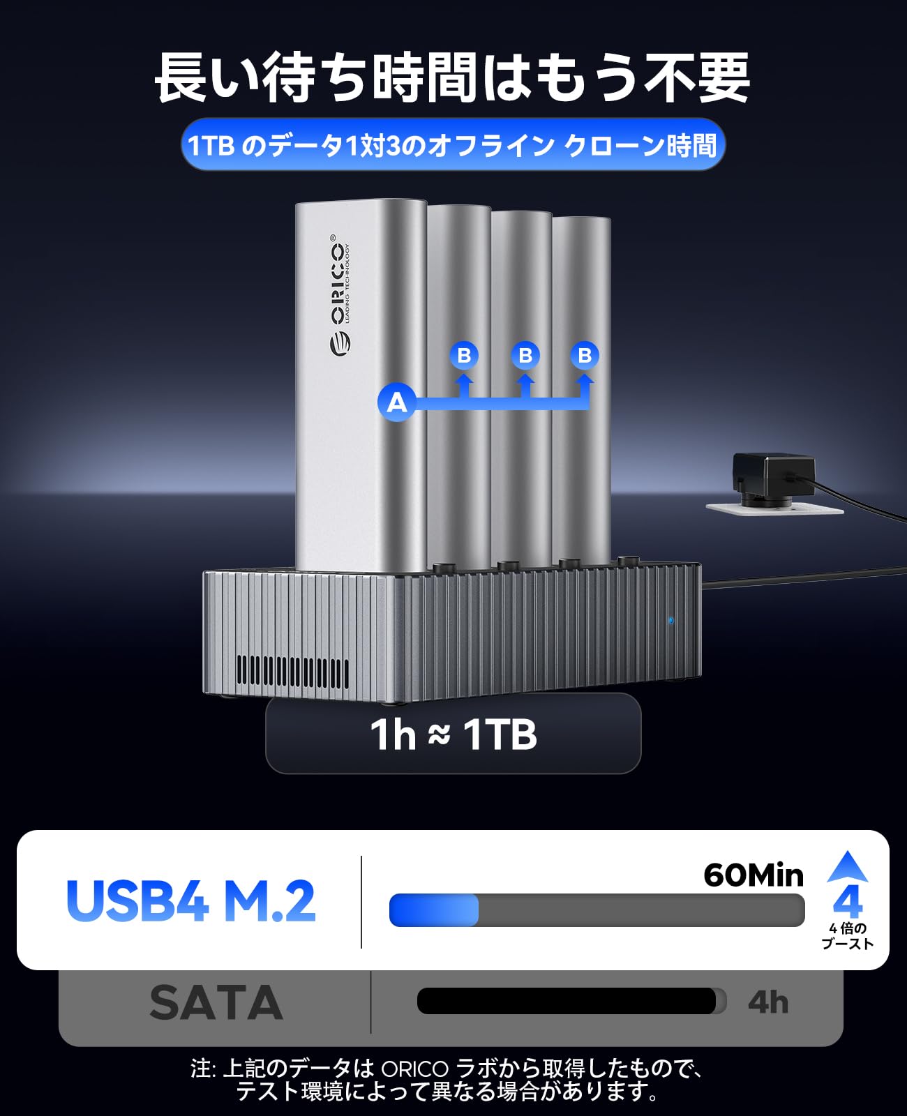 ORICO SSD クローン スタンド 40Gbps高速データ転送 M.2 SSD クローン ケース 4ベイ M.2 SSD 外付けケース 2230/2242/2260/2280 M-Key SSDに対応 (Nvmeのみ)オフラインクローン M.2 クローン 冷却ケース4個付き アルミニウム合金 (SSDなし) IT48N-C