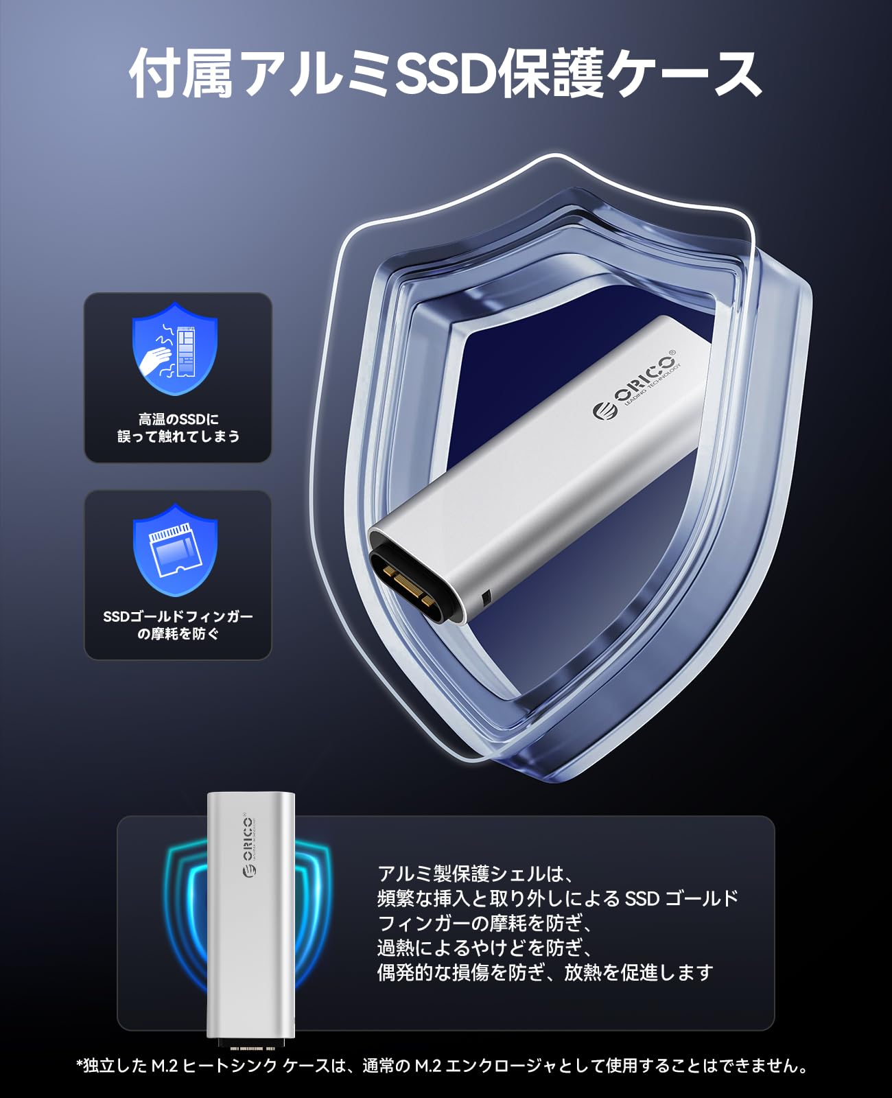 ORICO M.2 SSD 外付けケース M.2 SSD ケース USB 3.2 Gen 2 10Gbps 【NVME/PCIE専用】工具不要 アルミ制 NVMe SSD ケース 8TB 対応 2230/2242 /2260/2280 PCIe M-Key 対応,ホワイト PWM2-G2A